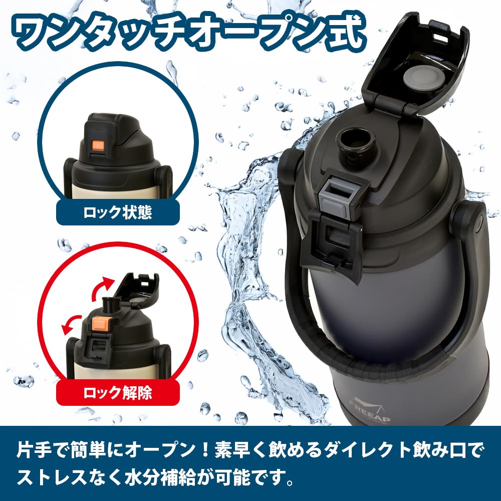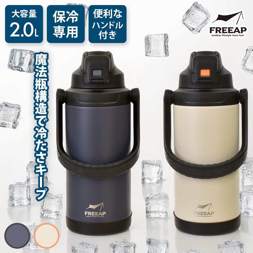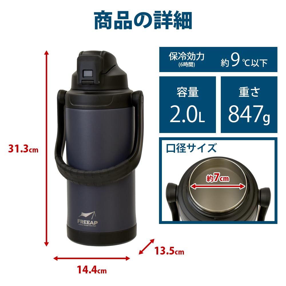 FREEAP 保冷 水筒 大容量 2リットル スポーツジャグ ワイド口径 洗いやすい アウトドア K-10884 (スモークネイビー)
