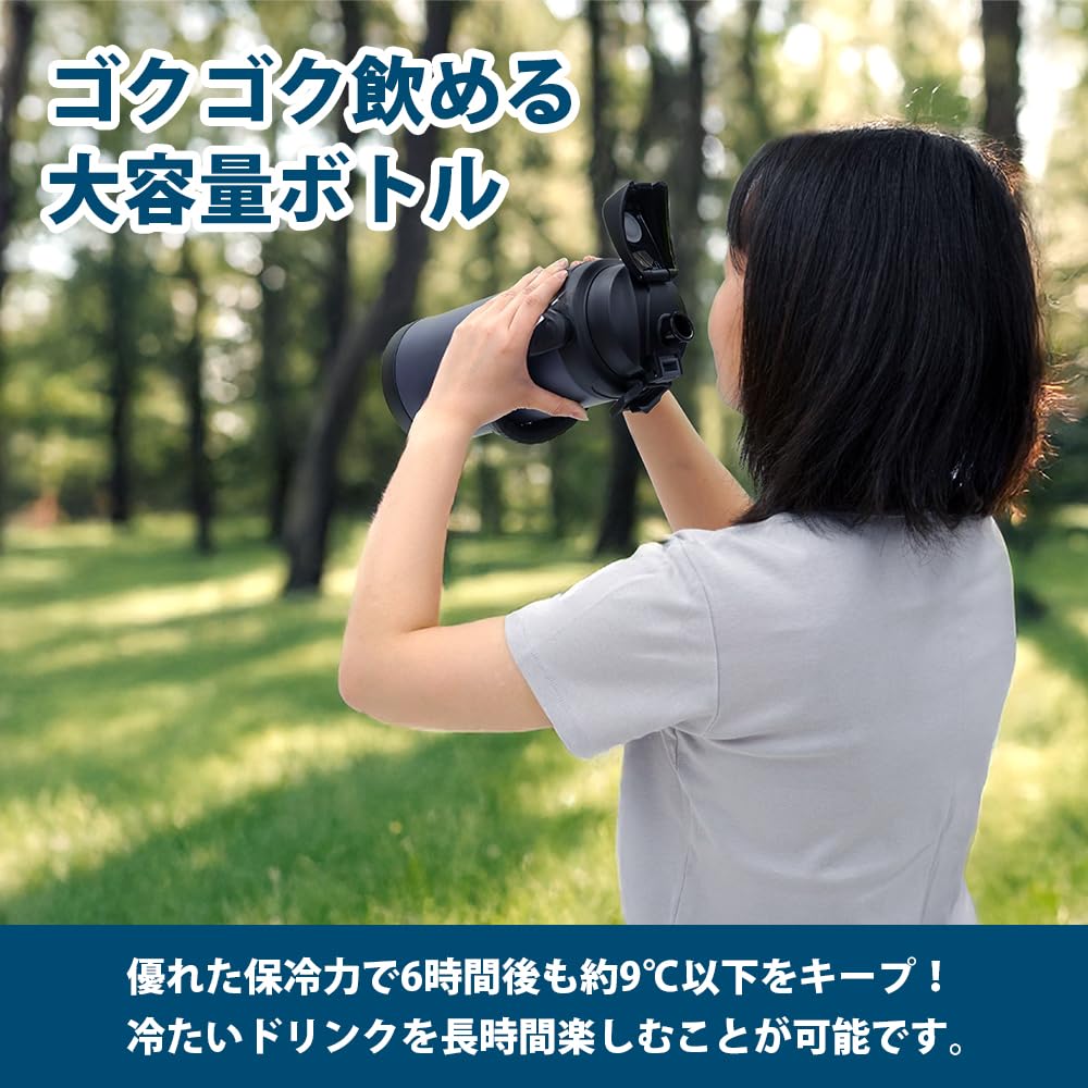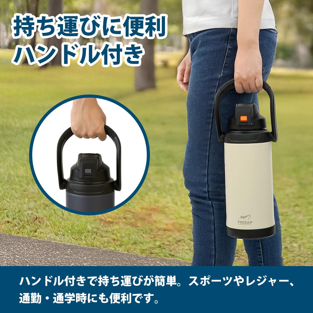 【努力特価】FREEAP 保冷 水筒 大容量 2リットル スポーツジャグ ワイド口径 洗いやすい アウトドア K-10884 (スモークネイビー)