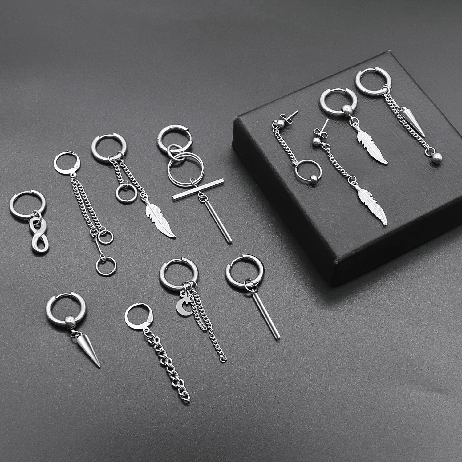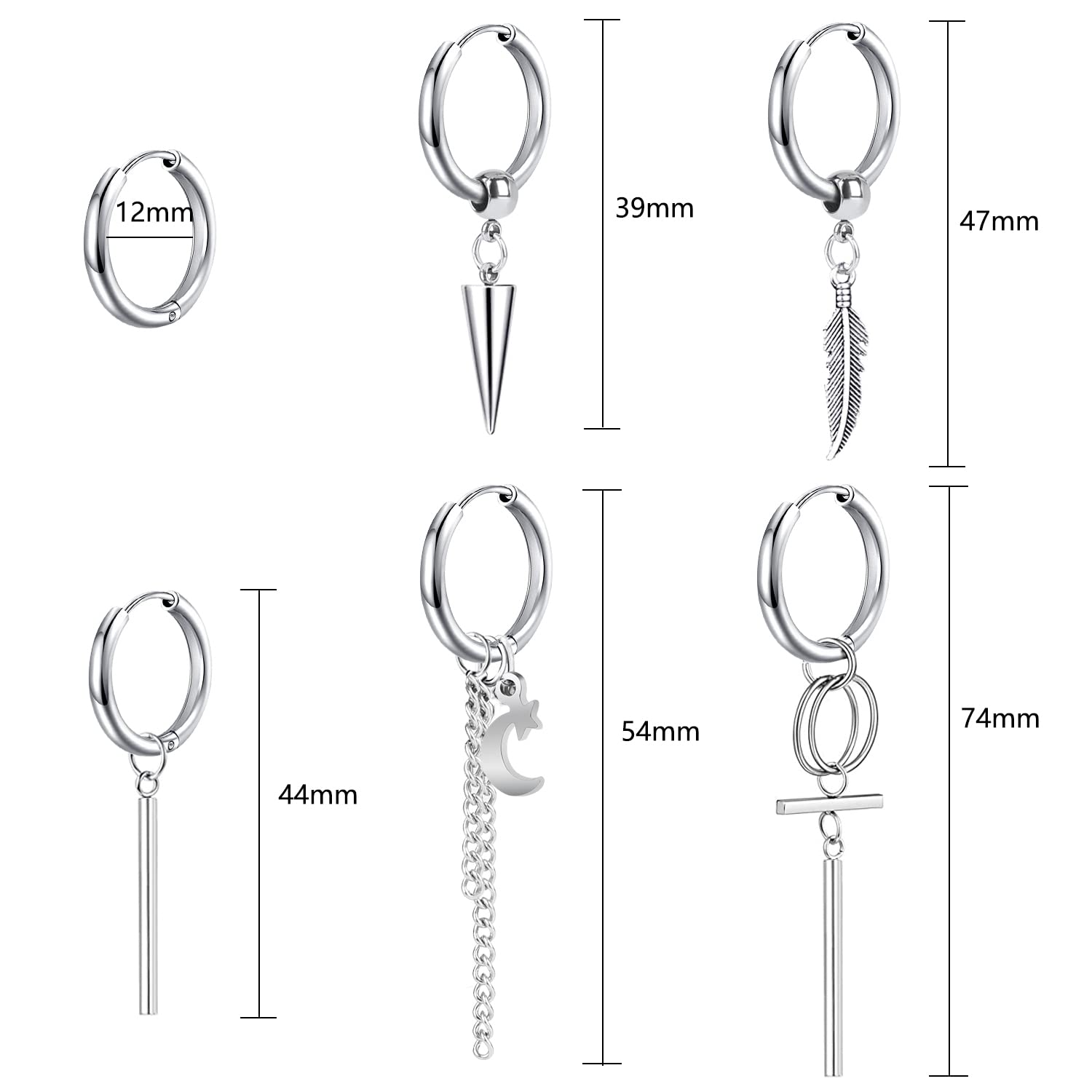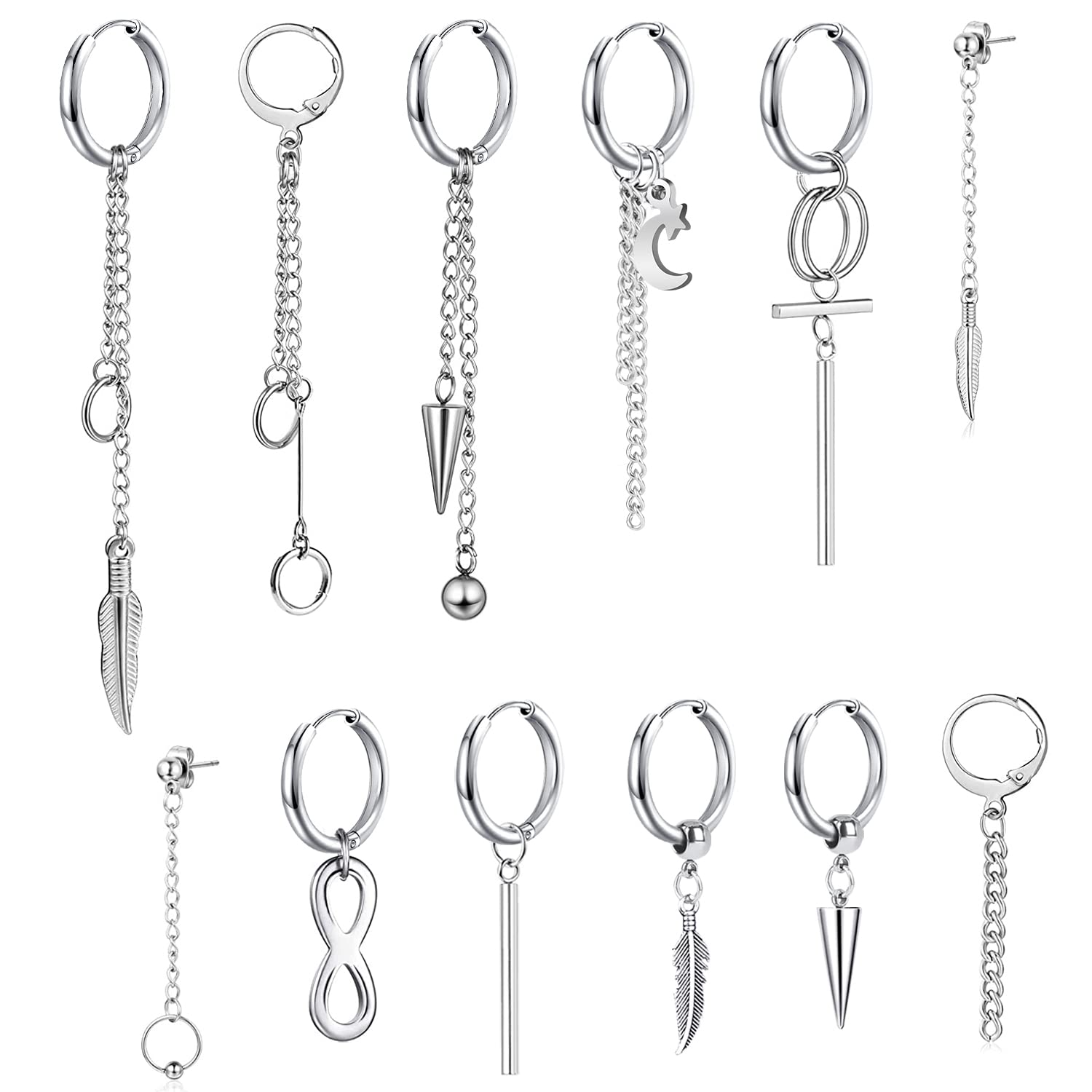 【内容】長さの異なチェーンのデザインがオシャレです、片耳12個セットです。チェーンピアス、シンプルなデザインでどんなコーデにもマッチするので、一年中使えます。フープ内径12mm, ピアスゲージ:18G / 素材:ステンレス ピアス。