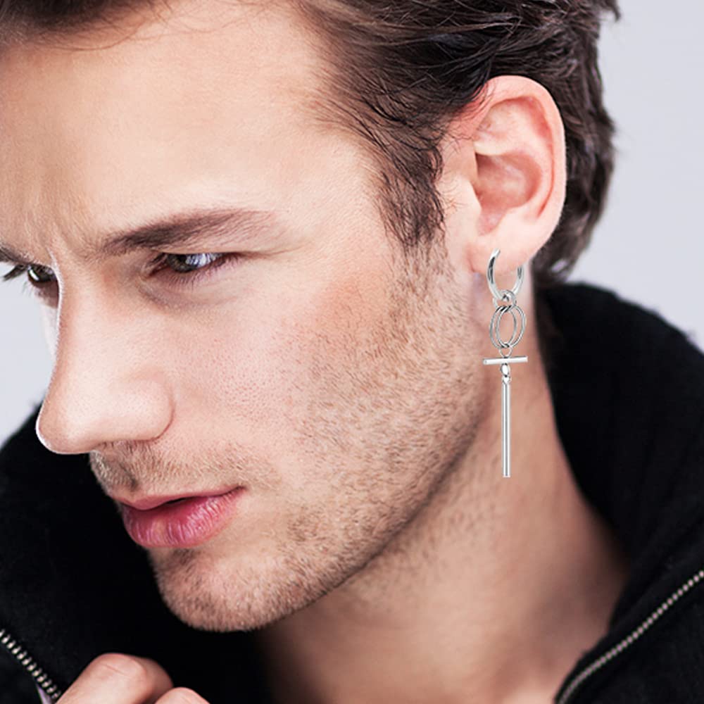 フープ リング ピアス メンズ レディース チェーン デザイン サージカルステンレス アレルギー対応 アクセサリー 誕生日 記念日 プレゼント 男女兼用 18G 内側12mm 幅2.5mm ロングチェーンピアス