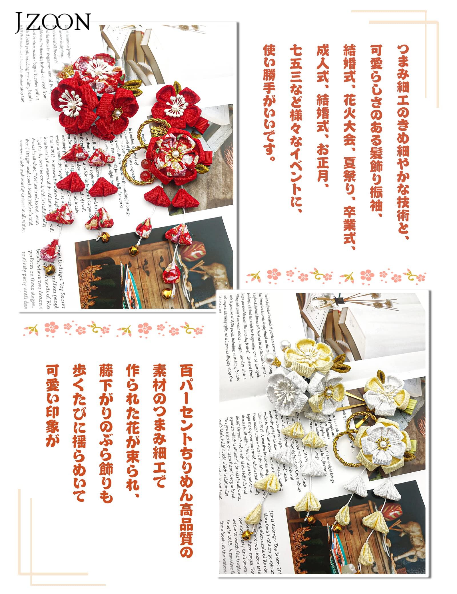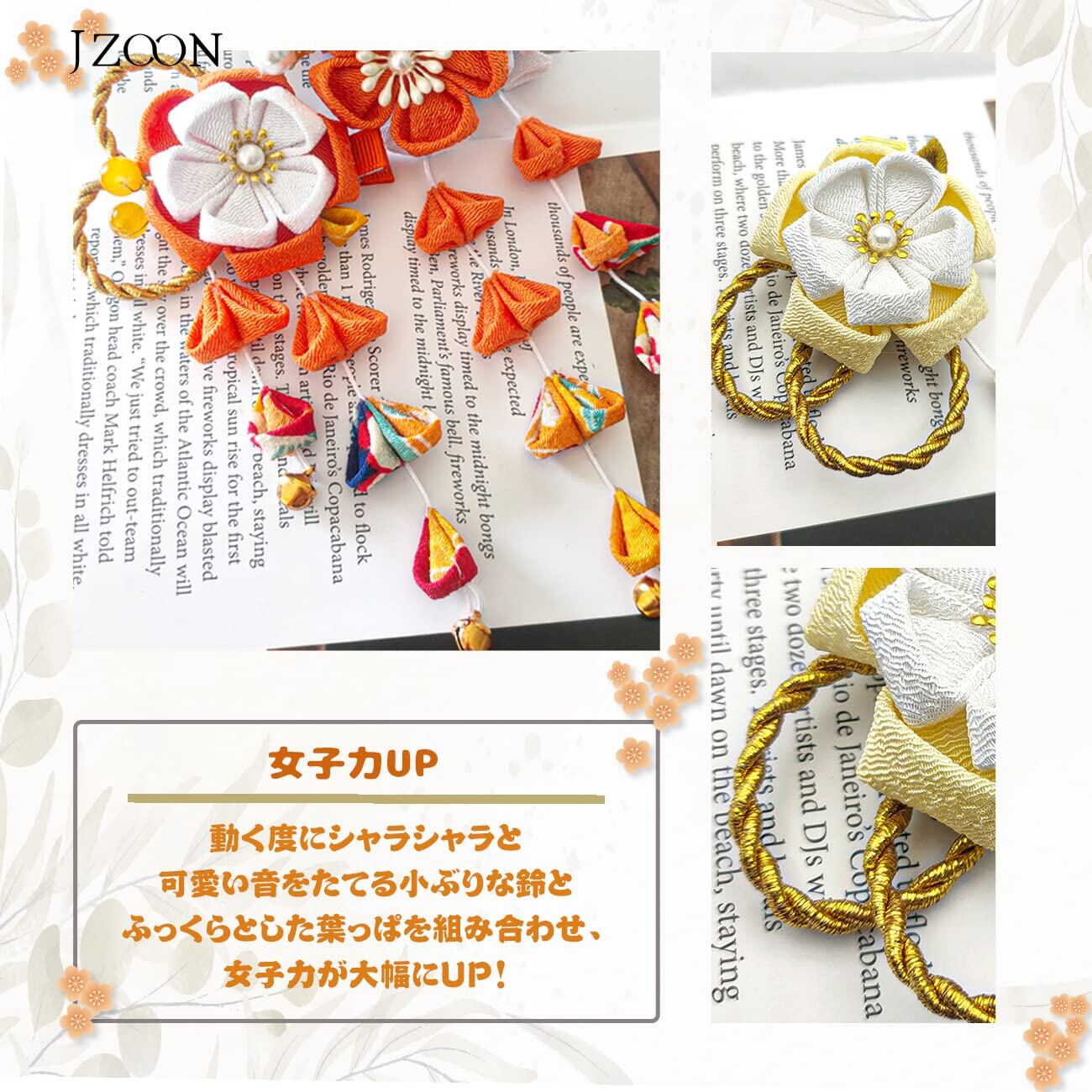 【在庫のみ】JZOON 髪飾り つまみ細工 七五三 成人式 浴衣 袴 着物 振袖 和装 花 卒業式 結婚式 鈴付き 手作り
