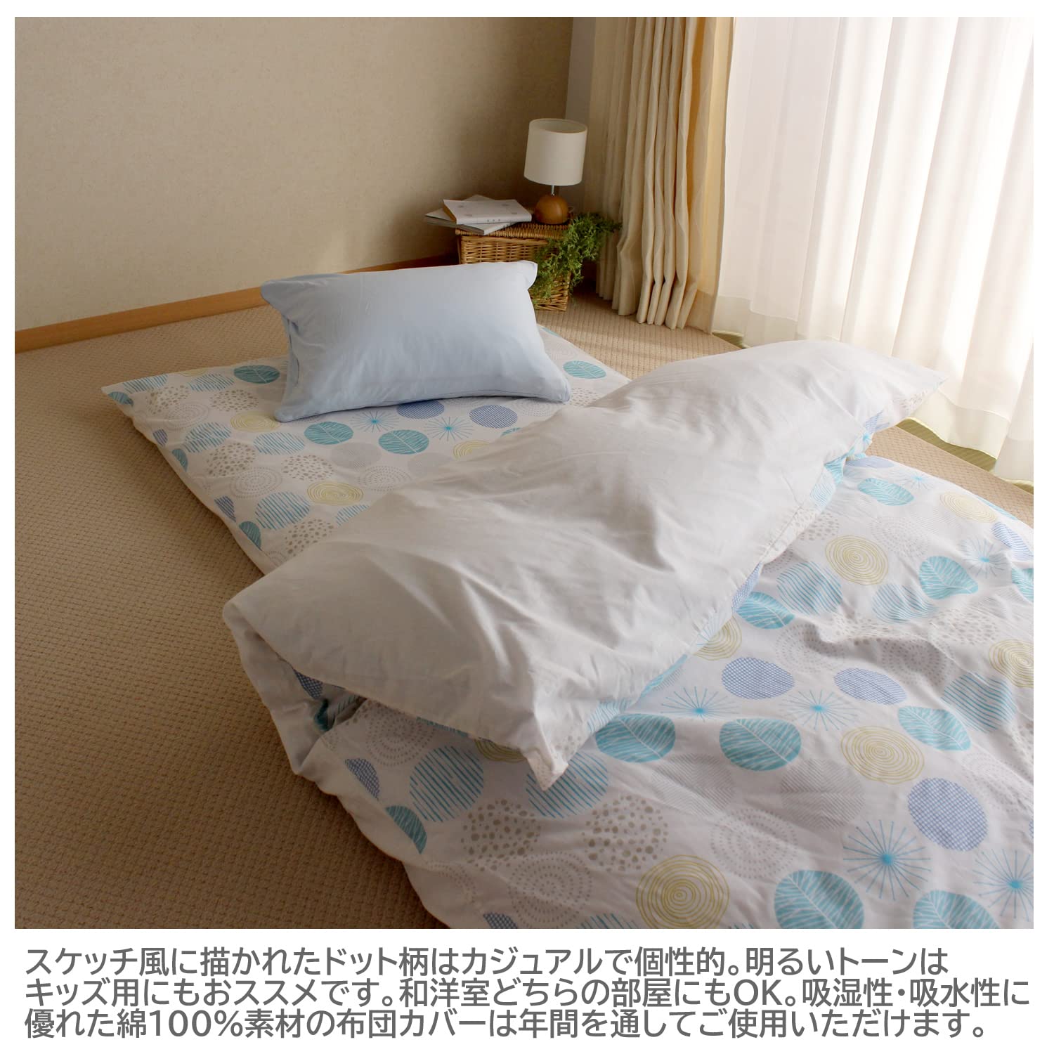 メリーナイト 掛け布団カバー 「ナチュラルドット」 ブルー シングルロング 約150×210cm 綿100% 吸湿性 通気性 心地よい肌触り オールシーズン 洗える CT12114-76