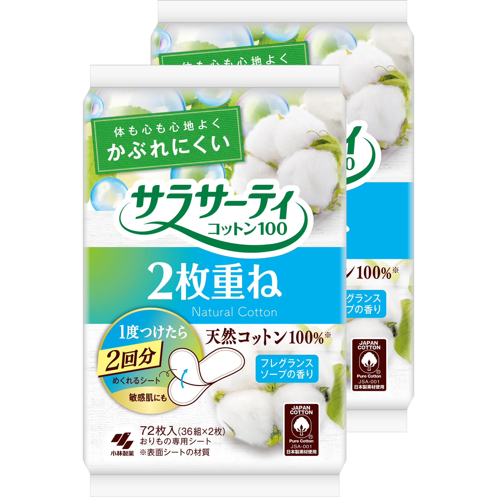 サラサーティ 【まとめ買い】 2枚重ねのめくれるシート フレグランスソープの香り おりものシート 72枚(36組×2枚) ×2個