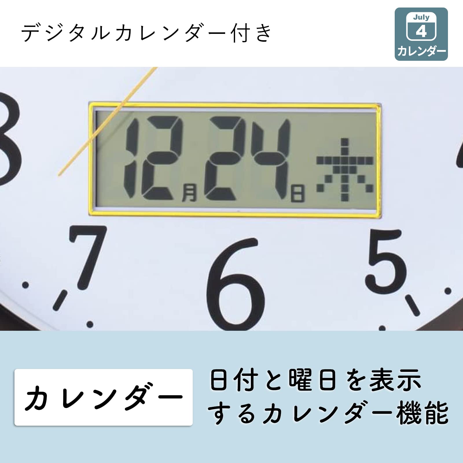 日付と曜日を表示するデジタルカレンダー付きの掛け時計