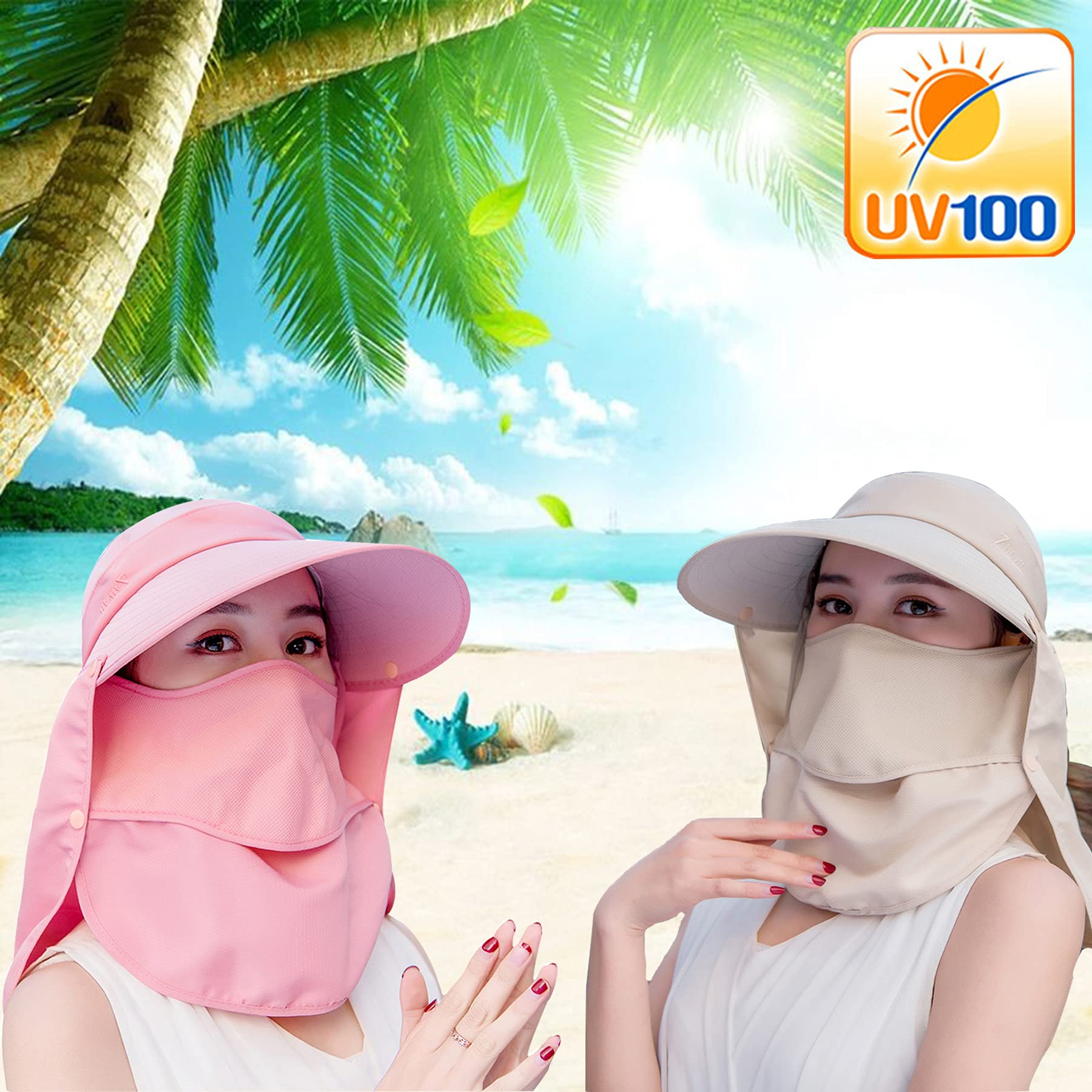 [Mukeyo] ガーデニング 帽子 uvカット 全面保護 日よけ帽子 紫外線対策 折りたたみ ポニーテール ハット つば広 作業用 バイザー 夏用帽子 レディース
