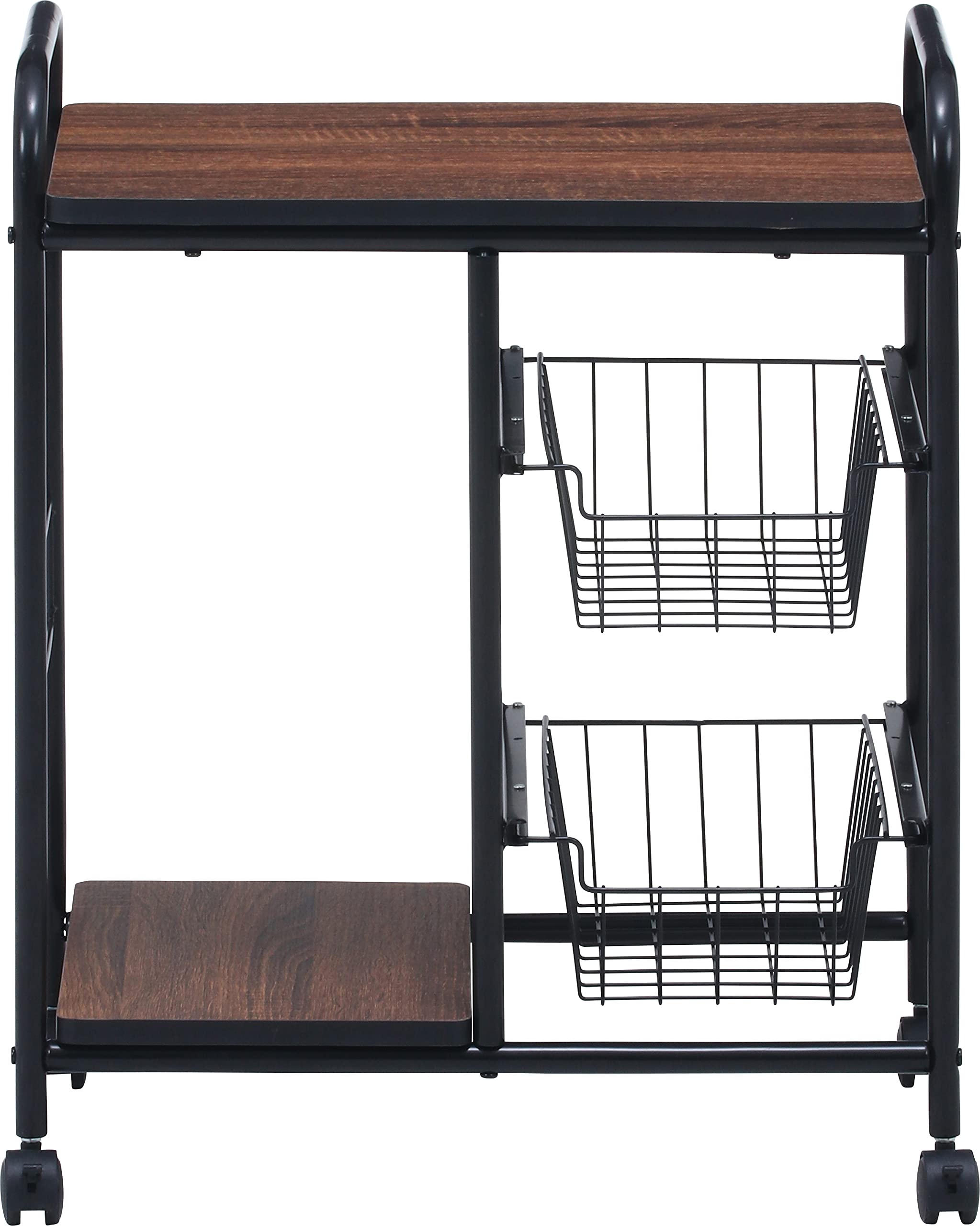 【特価処分】不二貿易 キッチンワゴン キャスター付き キッチンラック レンジ台 一人暮らし スライド棚 引き出し収納 バスケット付き 幅56×奥行35.5×高さ69.5cm ブラック ブラウン 14639
