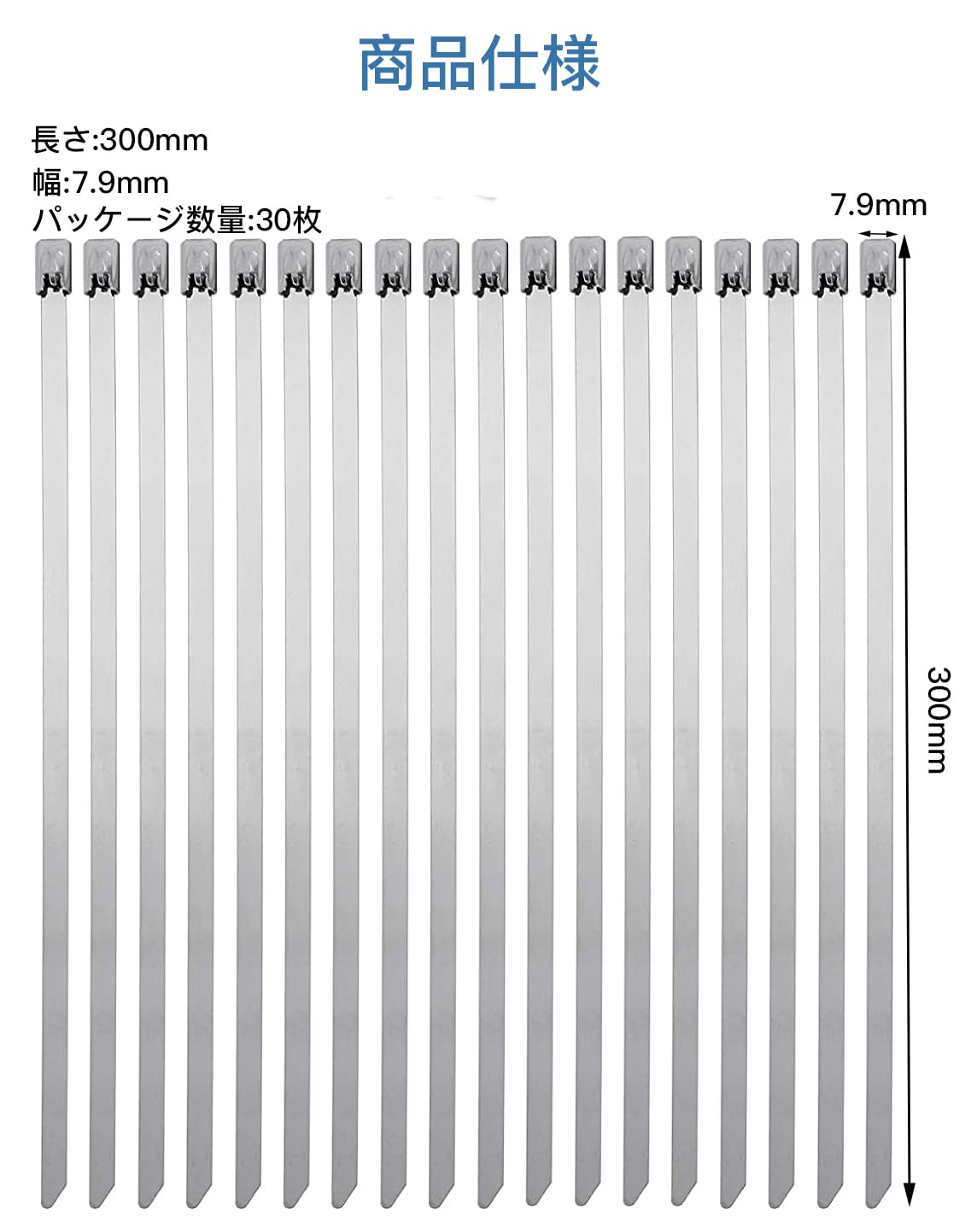 【数量限り】ステンレス結束バンド 固定結束バンド 304ステンレス製 タイラップ 耐熱性 耐久性 絶縁性 耐紫外線 屋外用 屋内用 (7.9mm*300mm 30本)
