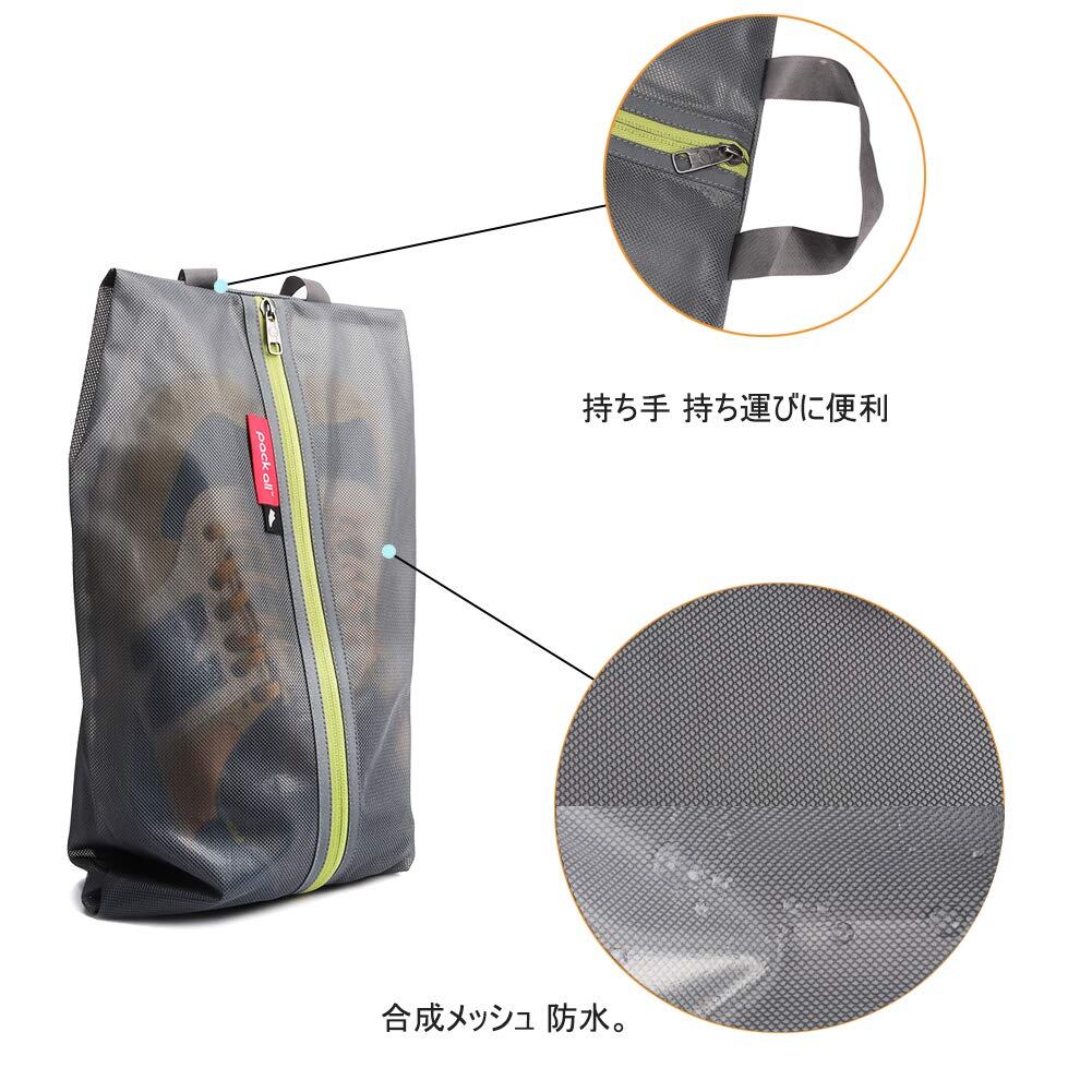 pack all シューズケース 撥水加工 シューズバッグ 軽量 防塵防汚防臭 半透明 シューズ袋 上履き入れ 靴入れ 持ち運び便利 男女兼用 色とサイズ選び可能 旅行 出張 スポーツ 学校 家庭用 ポリエステルとTPU (グレー、2枚セット)