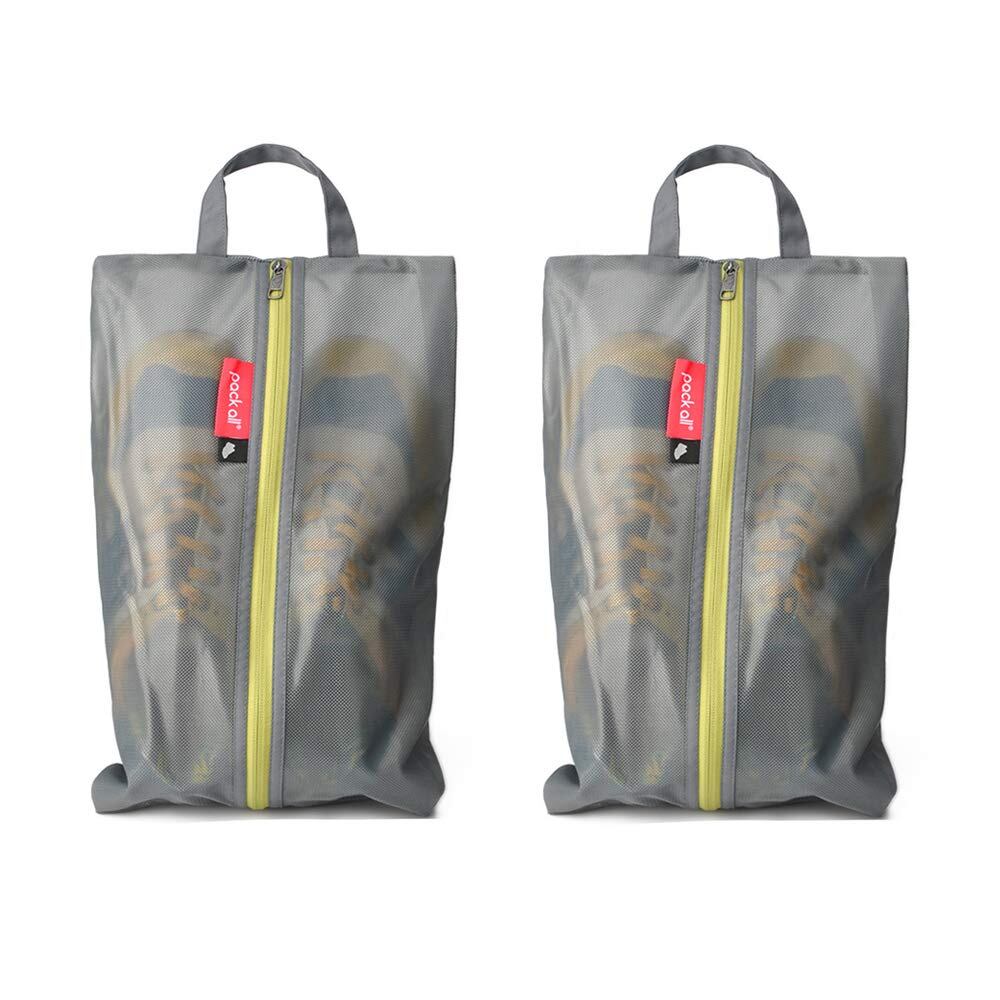 【努力特価】pack all シューズケース 撥水加工 シューズバッグ 軽量 防塵防汚防臭 半透明 シューズ袋 上履き入れ 靴入れ 持ち運び便利 男女兼用 色とサイズ選び可能 旅行 出張 スポーツ 学校 家庭用 ポリエステルとTPU (グレー、2枚セット)
