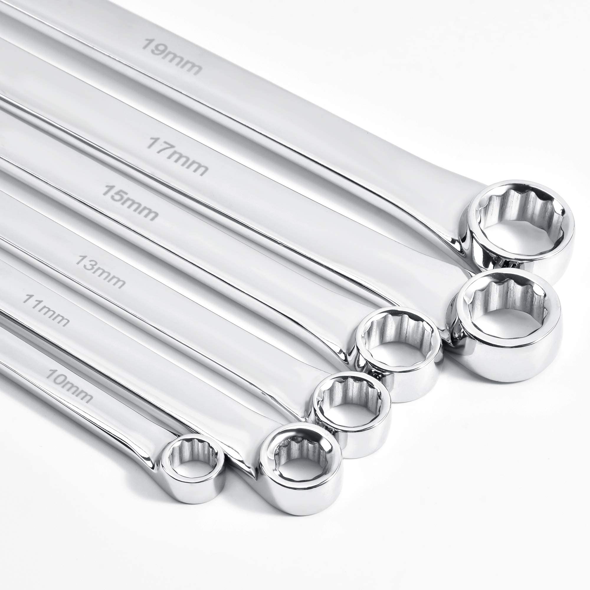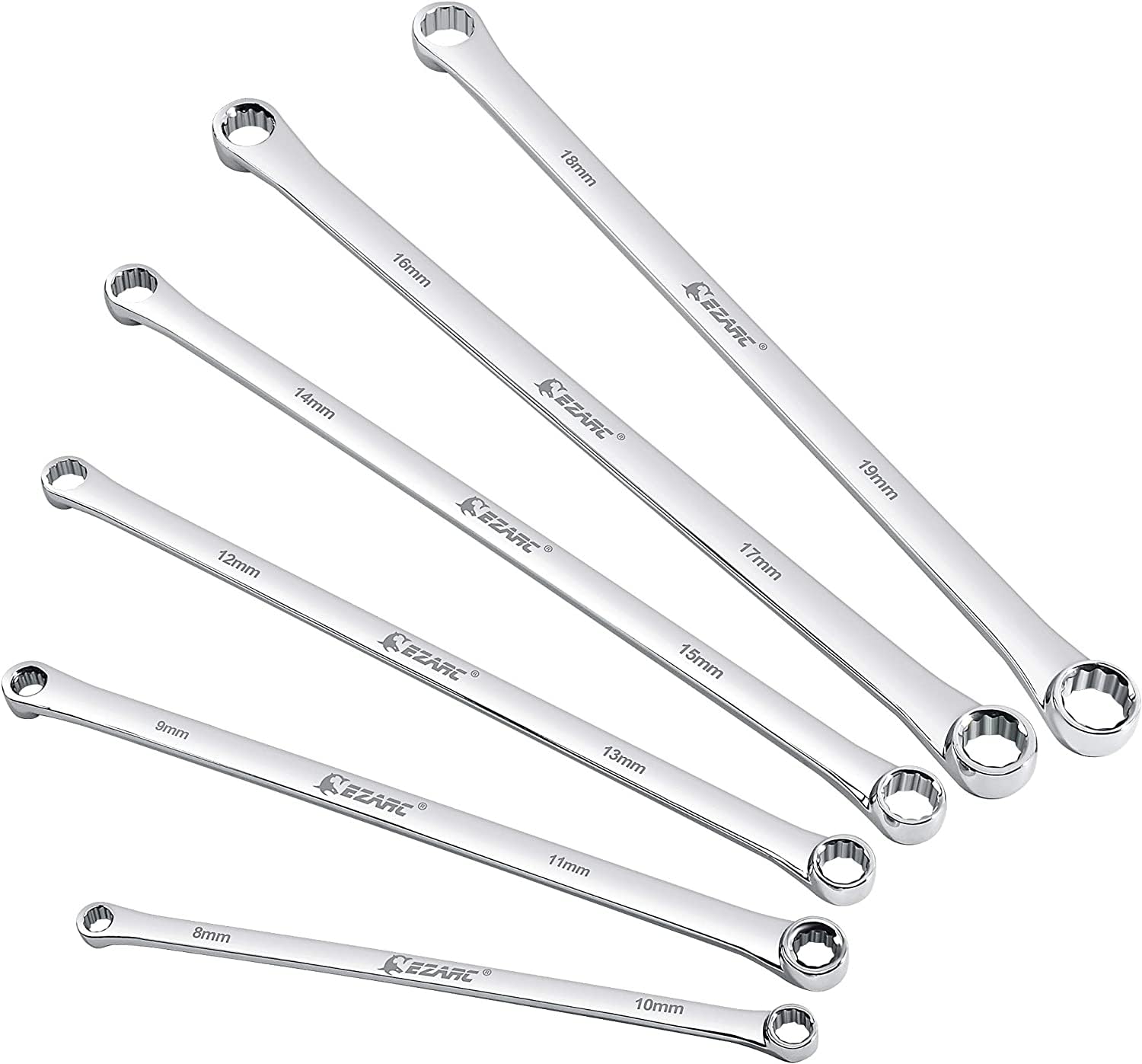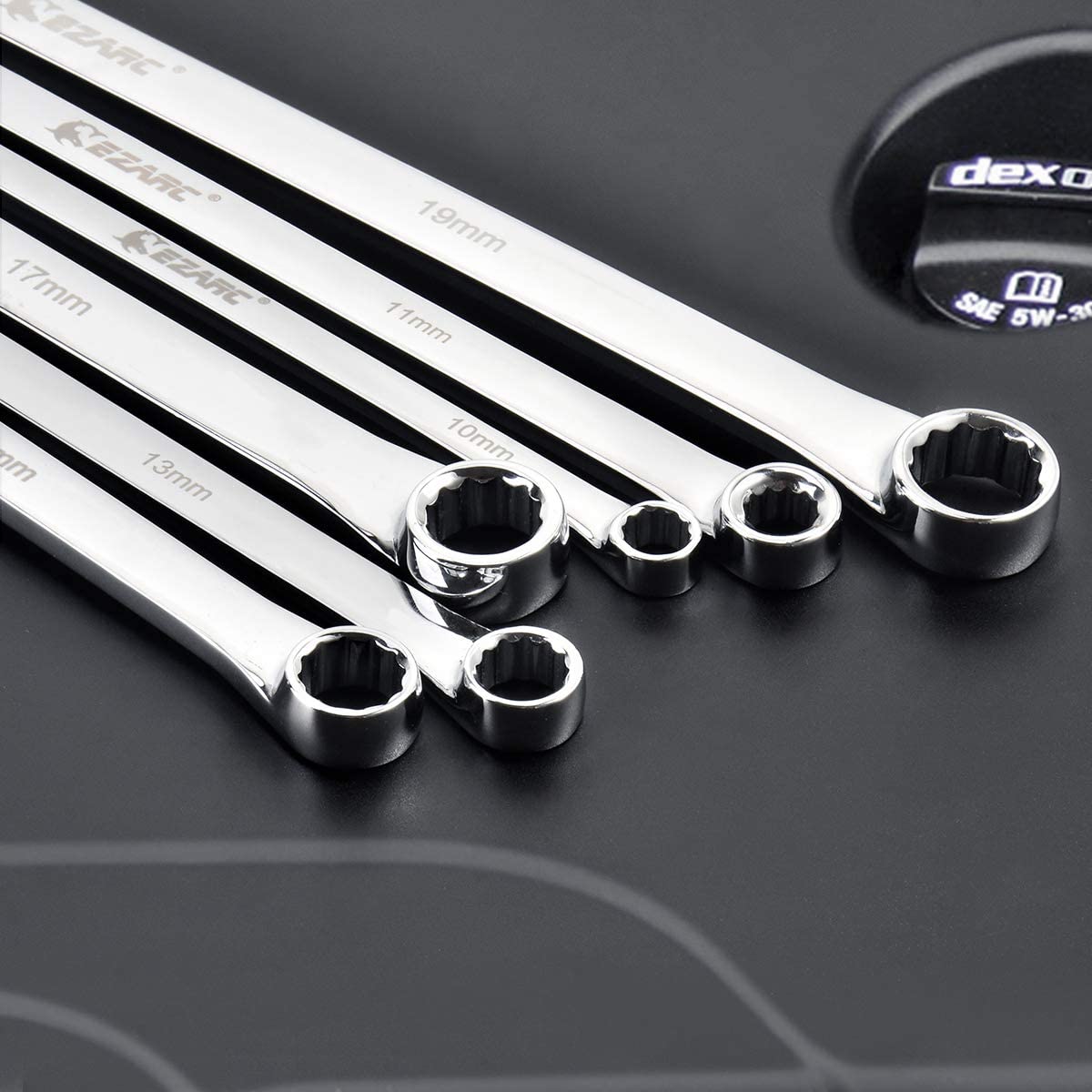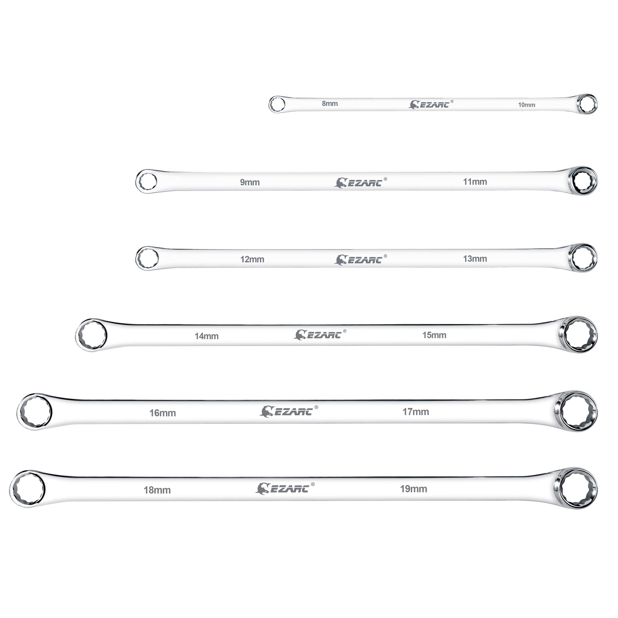 【数量限り】EZARC 超ロングストレート メガネレンチセット ミラー仕上げ ミリ 6本組 収納袋付き