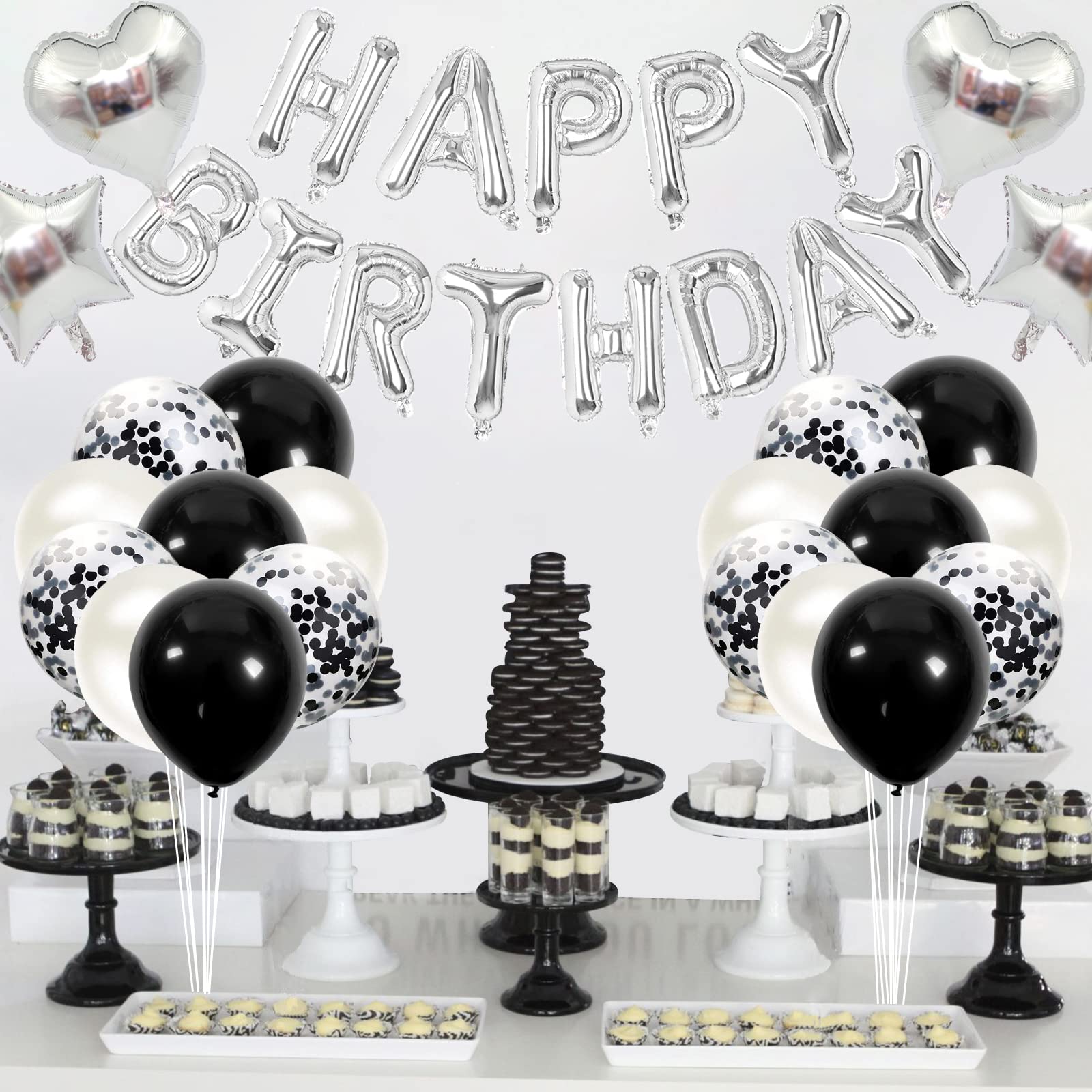 【新着特価】EXGOX 誕生日 バルーン 飾り付け セット ブラック 風船 パーティー 飾り ハッピーバースデー happy birthday ガーランド ハート風船 男女の子(ブラック)