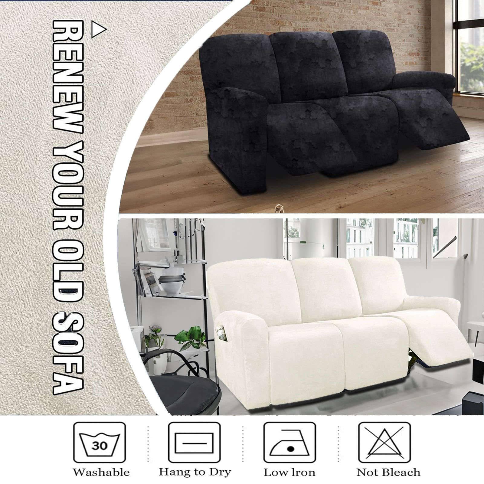 ぴったりフィット: この革新的な 8 Pieces リクライニングチェア ソファカバーは/豪華なベルベットの豪華な生地で作られています., 含む 2 アームピース,3 シートピースのセンターバックと 3 表紙裏中央, 間にソファ幅を合わせる 69-91in(175-230CM). 右側ポケットと連続フットレスト付き.
