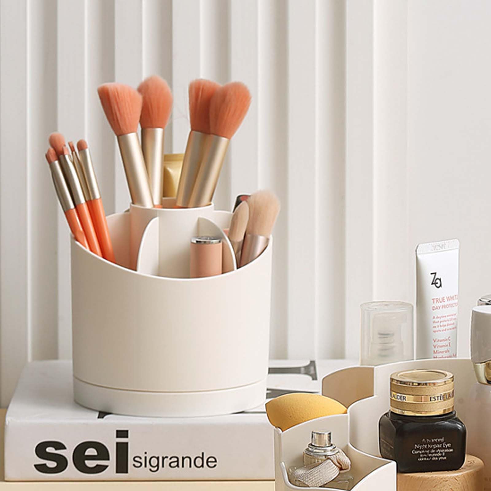 ペン立て 360度回転 ペンホルダー ペンスタンド 大容量 ぺんたて 7グリード分類鉛筆たて 多機能 文房具収納ボックス 化粧品 家庭生活用 収納ボックス オフ(ホワイト)