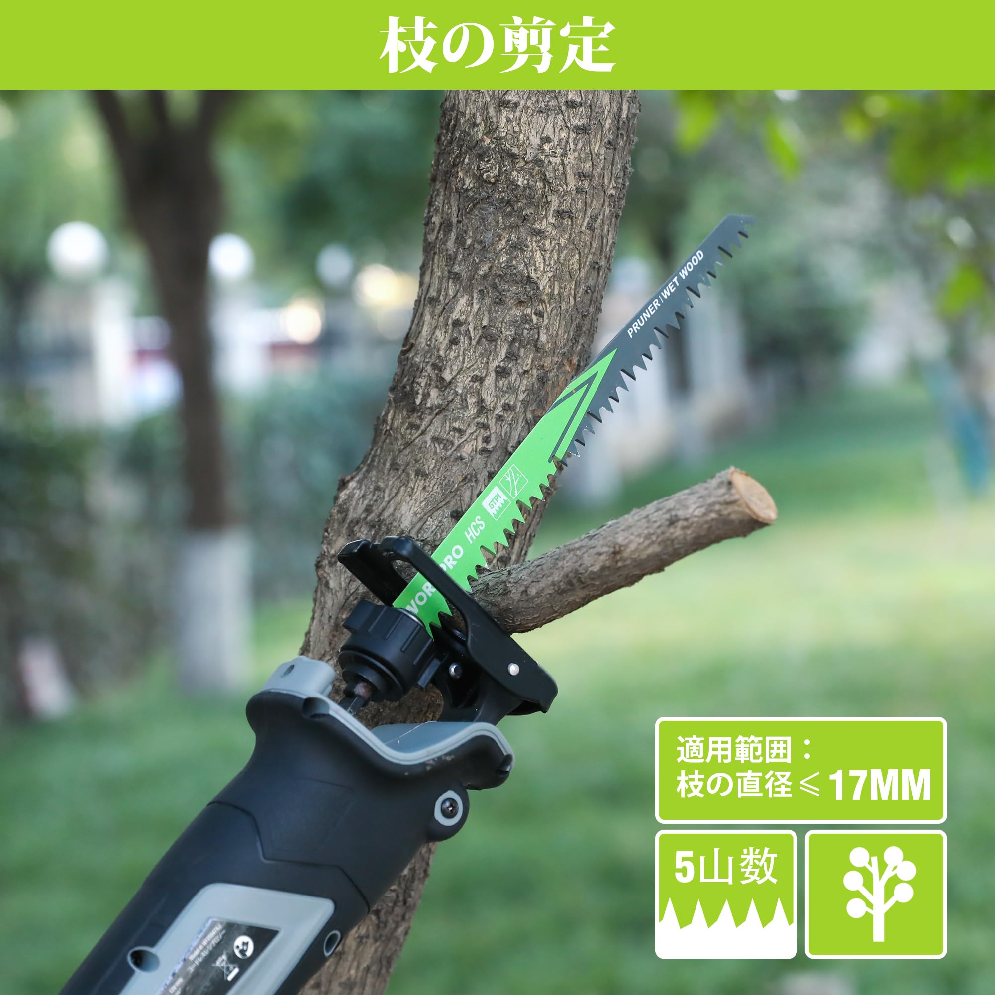 【第二代 新登場】WORKPRO レシプロソー替刃 電気のこぎり替え刃 枝切り用 木工用 生木 枝打ち 果樹剪定 庭木剪定 230mm 5本組 緑