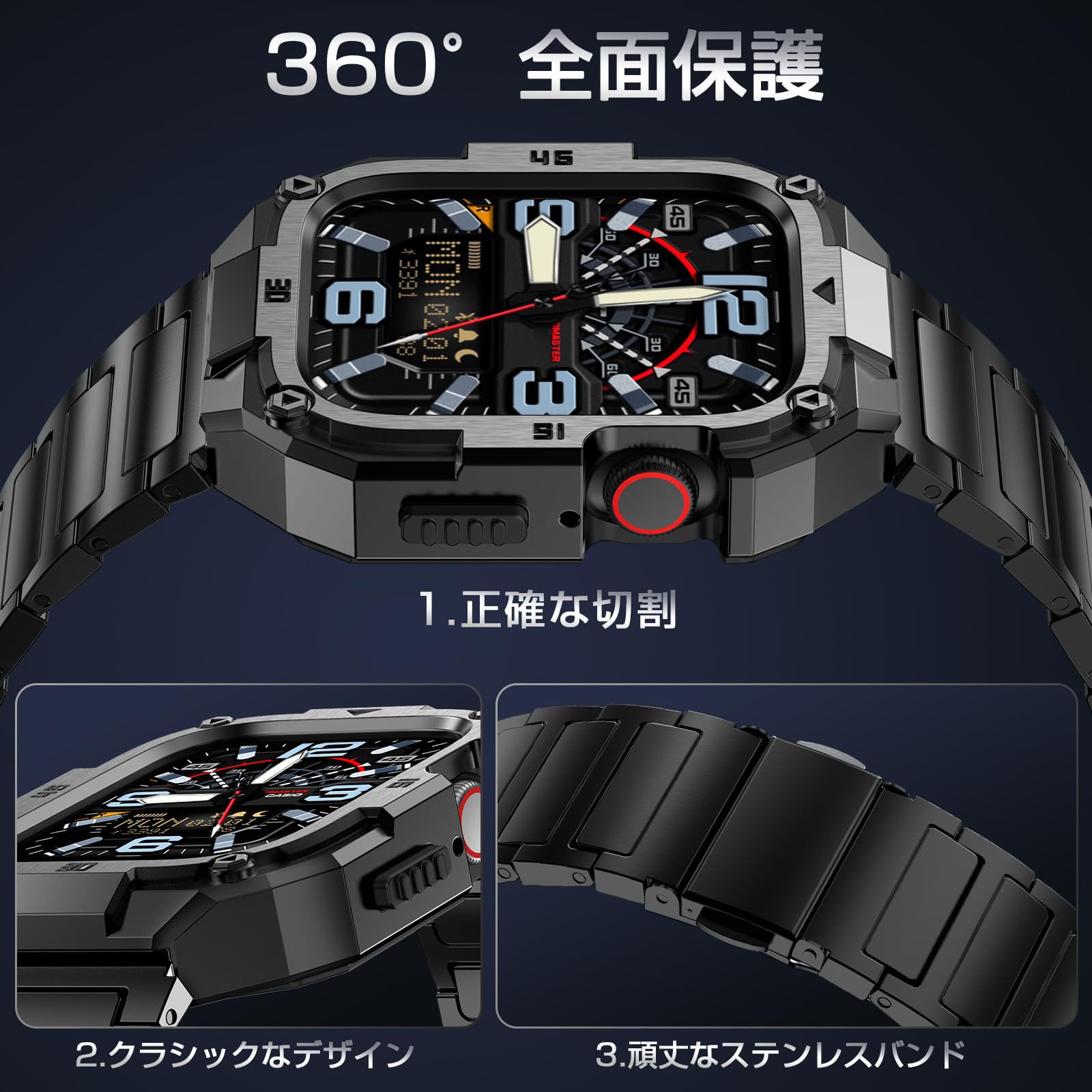 【ステンレス+TPUケース二重保護&360°全面保護】このApple Watch 10 46mmに対応するバンドは一体化デザインの上に全体は316Lステンレス鋼素材を採用し、隆起したフレームはApple Watchを全方位保護できます。またステンレス製カバーの中にTPU保護ケースが内蔵していて、衝撃をさらに緩衝し、Apple Watchを二重保護できます。耐久性が高くて耐衝撃にも強いです。