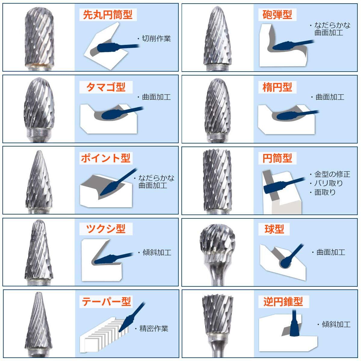 幅広い用途:工芸品、金型キャビティ、金属と非金属、自動車のエンジン工場など切削、 研磨加工。主に木、アルミ、プラスチックなどの軟らかい素材に適用します。自動車やバイクのエンジンポート研磨、溶接目研磨・バリ取り作業などにも最適です。 鉄やステンレス等の研磨に最適です。