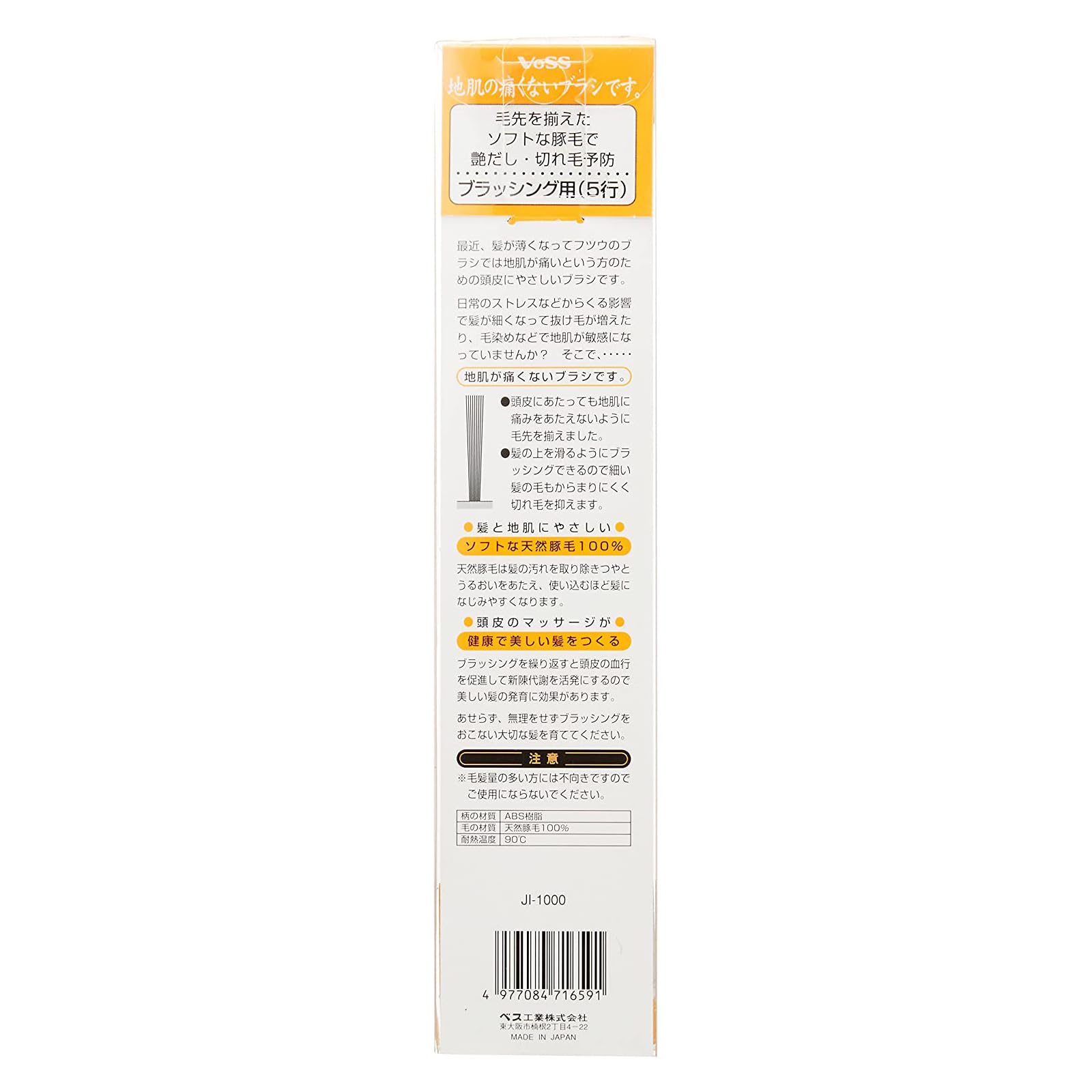 【特価処分】ベス 天然豚毛100% ヘアブラシ (ブラッシング用5行) ブラウン 1 本