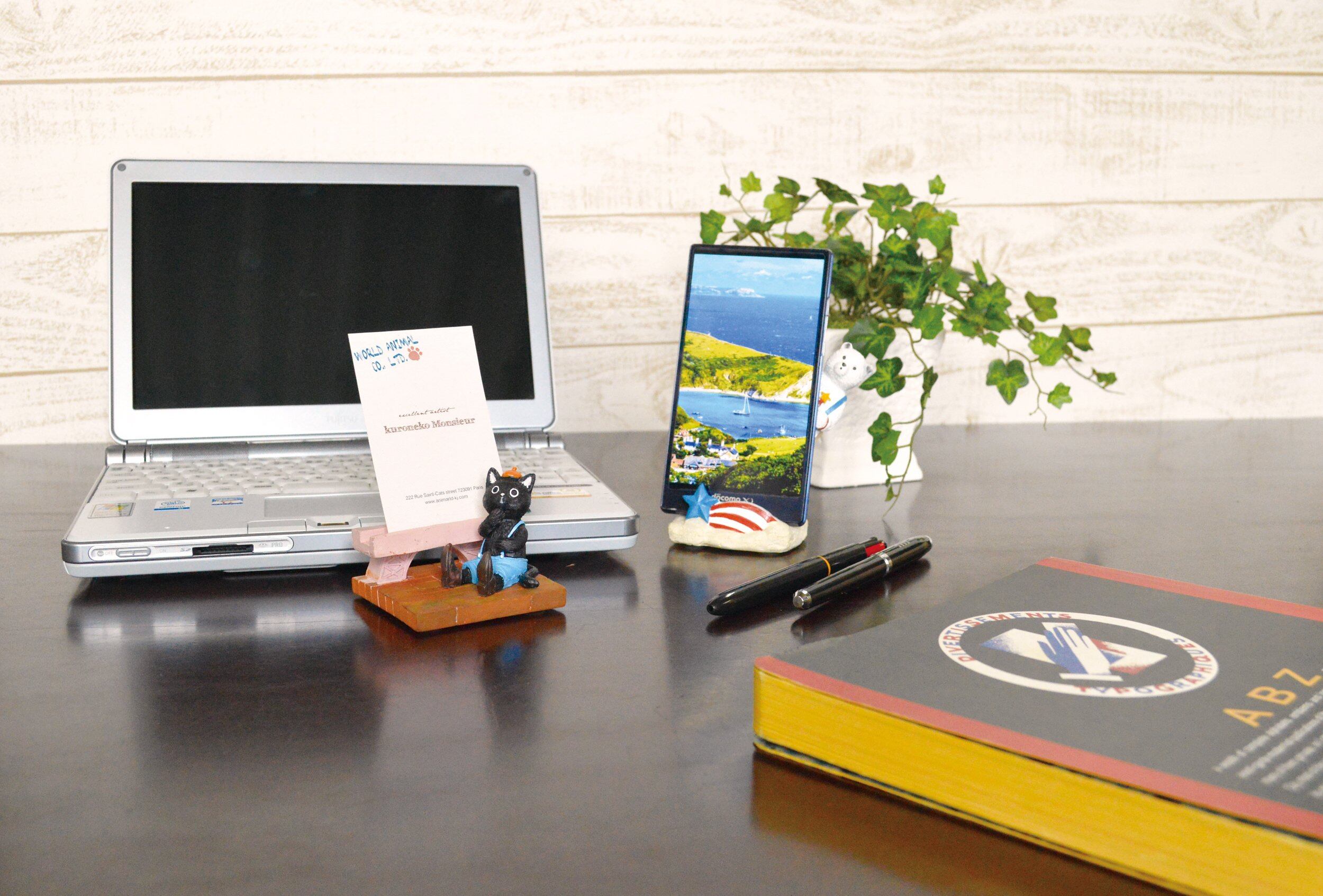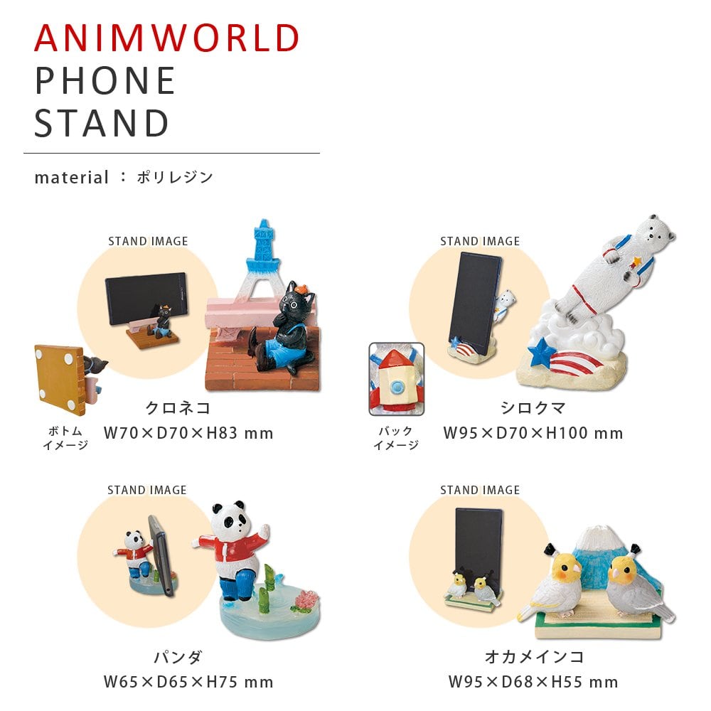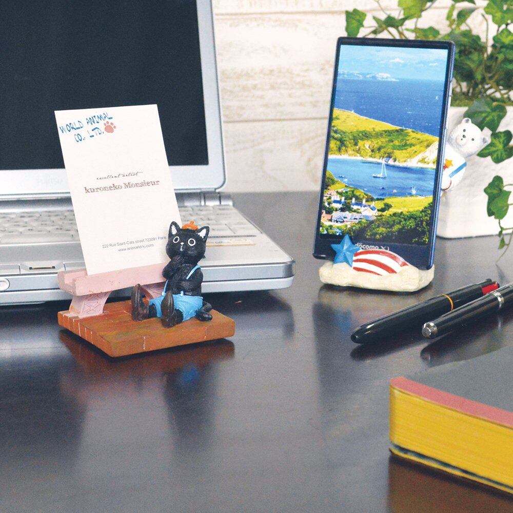 かわいい おもしろ 動物 アニマールド スマホスタンド くろねこ ムッシュ サイズ:w7×d7×h8.3cm 0.3 材質:ポリレジン ポリレジン製のアニマルスマートフォンスタンド。 ユニークでかわいい動物たちにほわっと和みます。 机の上にちょこんと乗って、さりげなく携帯を支えてくれます。