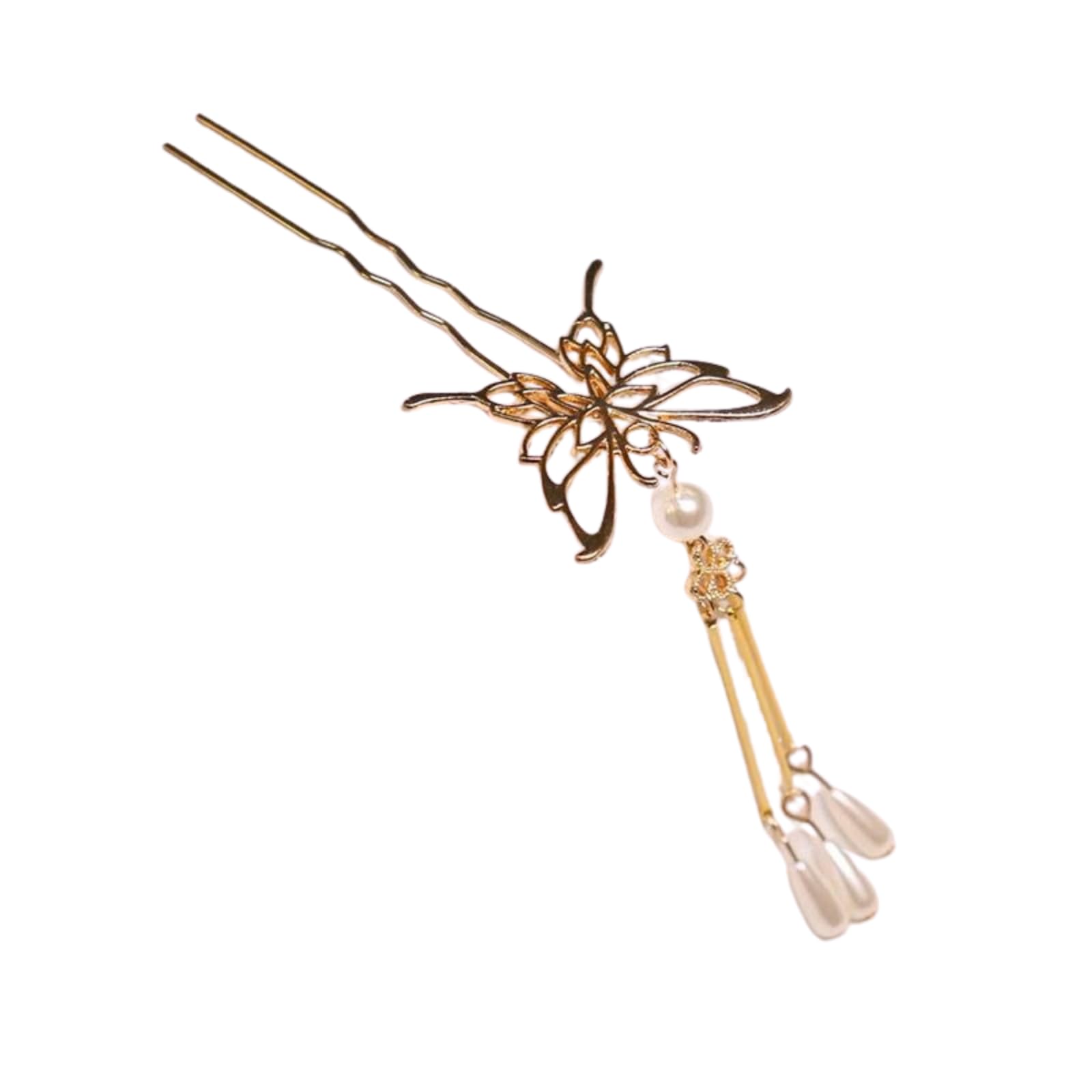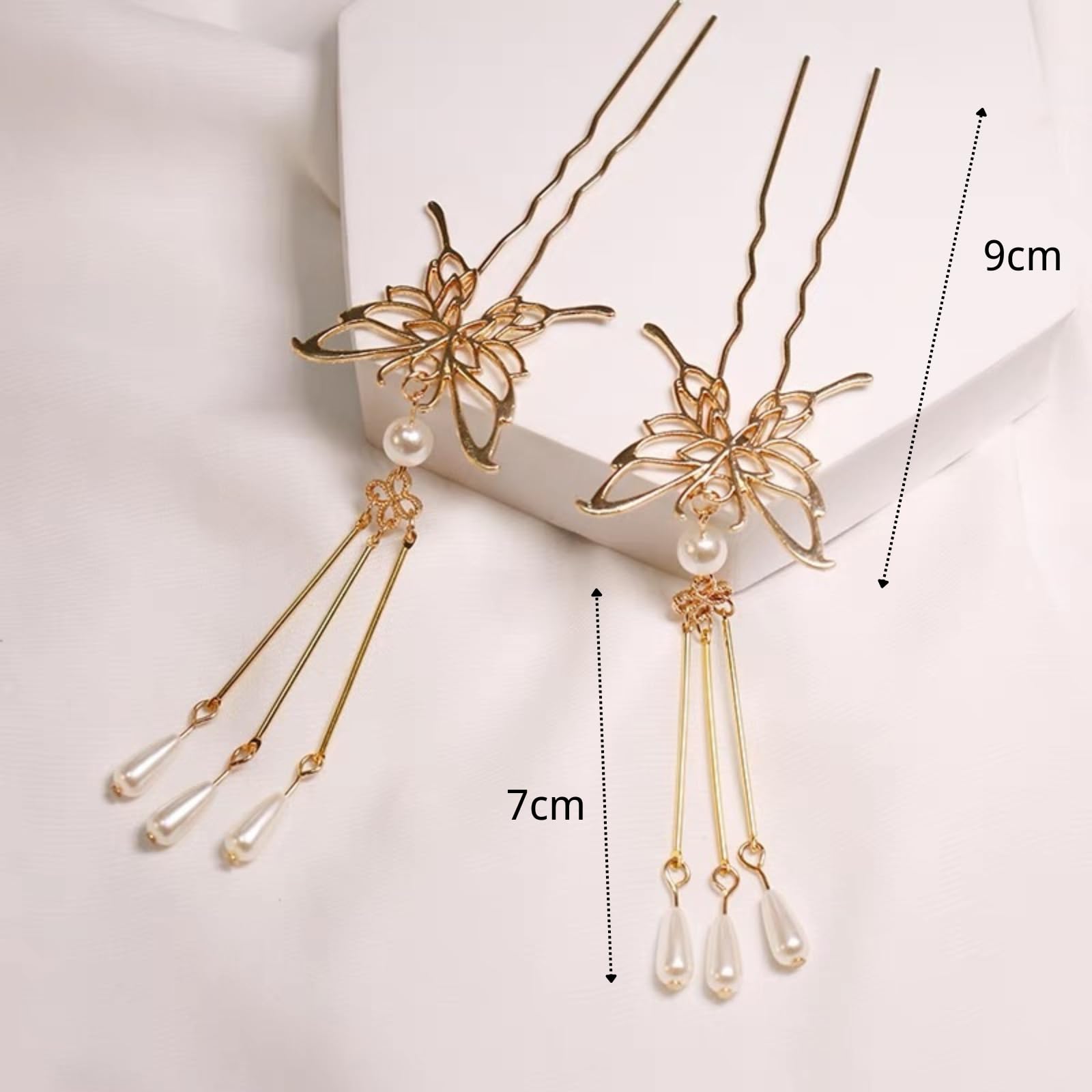 【数量限り】簪 かんざし 髪飾り 和装 Uコーム 合金ヘ 髪飾り かんざし 結婚式 着物 成人式 発表会 (蝶+パール/Gold)