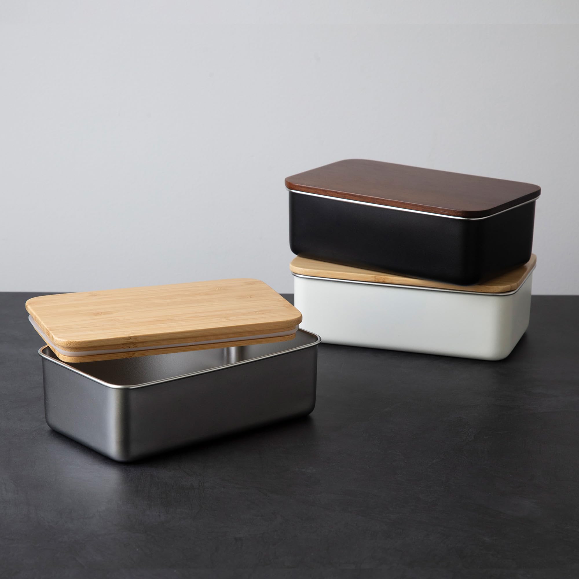 耐久性・耐食性に優れた18-8ステンレス容器に、耐水加工天然木(ウレタン塗装)のフタにシリコーンパッキンをセット。