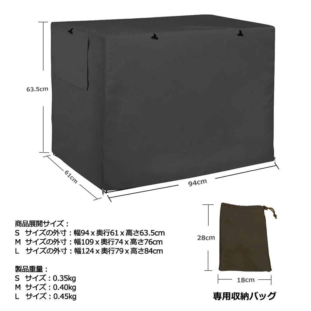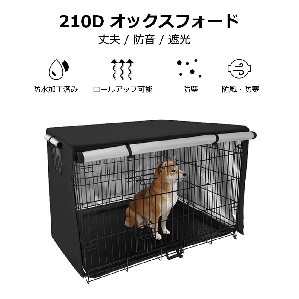 犬のケージカバー ペットサークルカバー 犬用ケージカバー 防寒 夏 通気 水洗い可能 防水 落ち着ける空間作り ファスナー付き 取り付け簡単 (ブラックM(109*74*76cm))