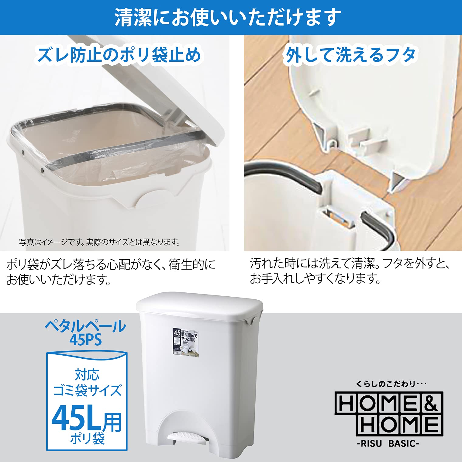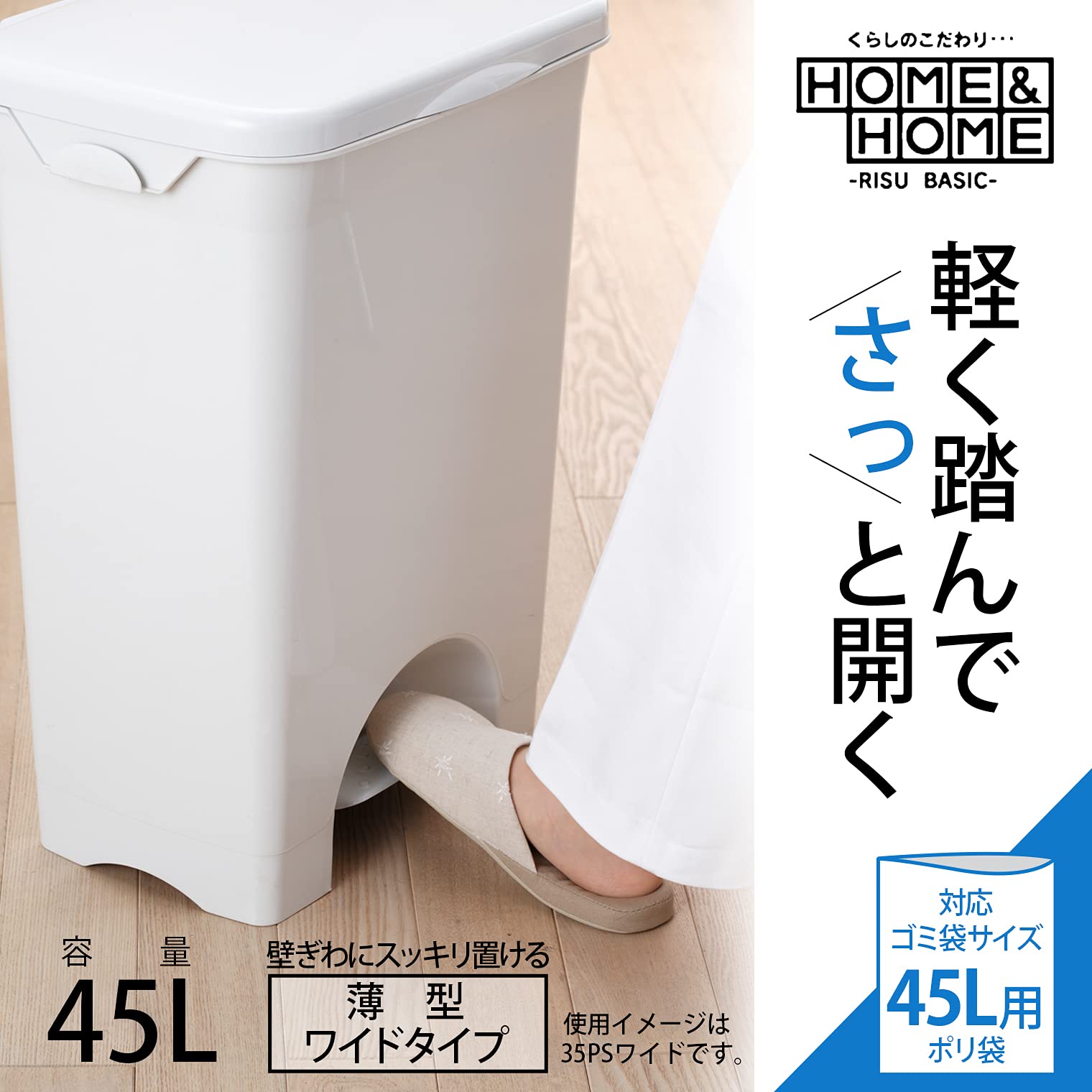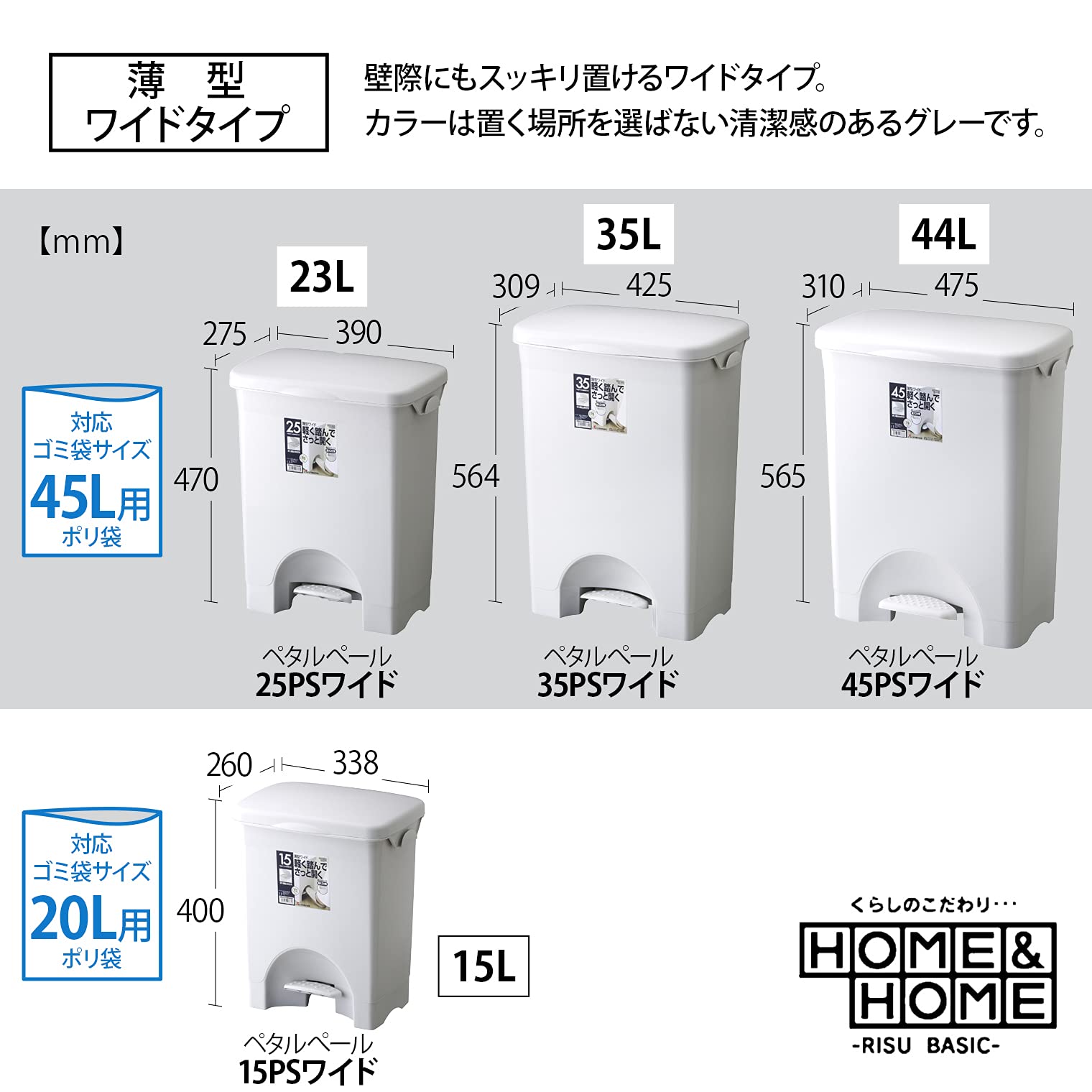 【在庫のみ】リス ゴミ箱 ペダルペール 横型 ワイド ポリ袋フック付き グレー 45L H&H 日本製 45PS
