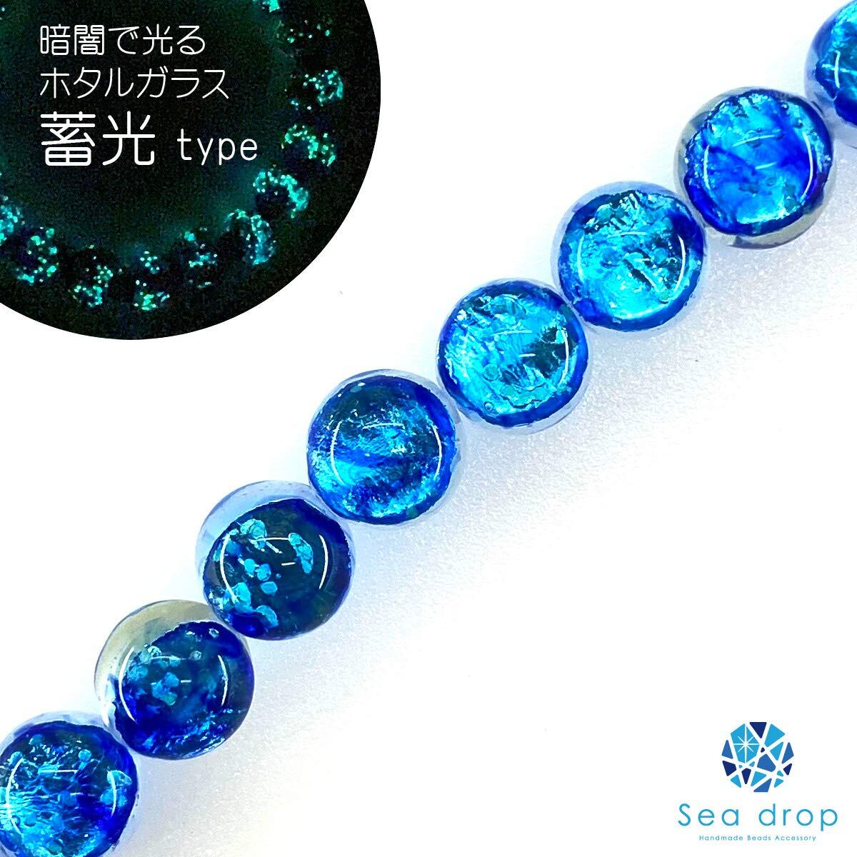 【努力特価】Sea drop 光る ホタルガラス ミヤコマリン8mm 半連 25玉 約20cmビーズ 蓄光 とんぼ玉 [029htt-08]