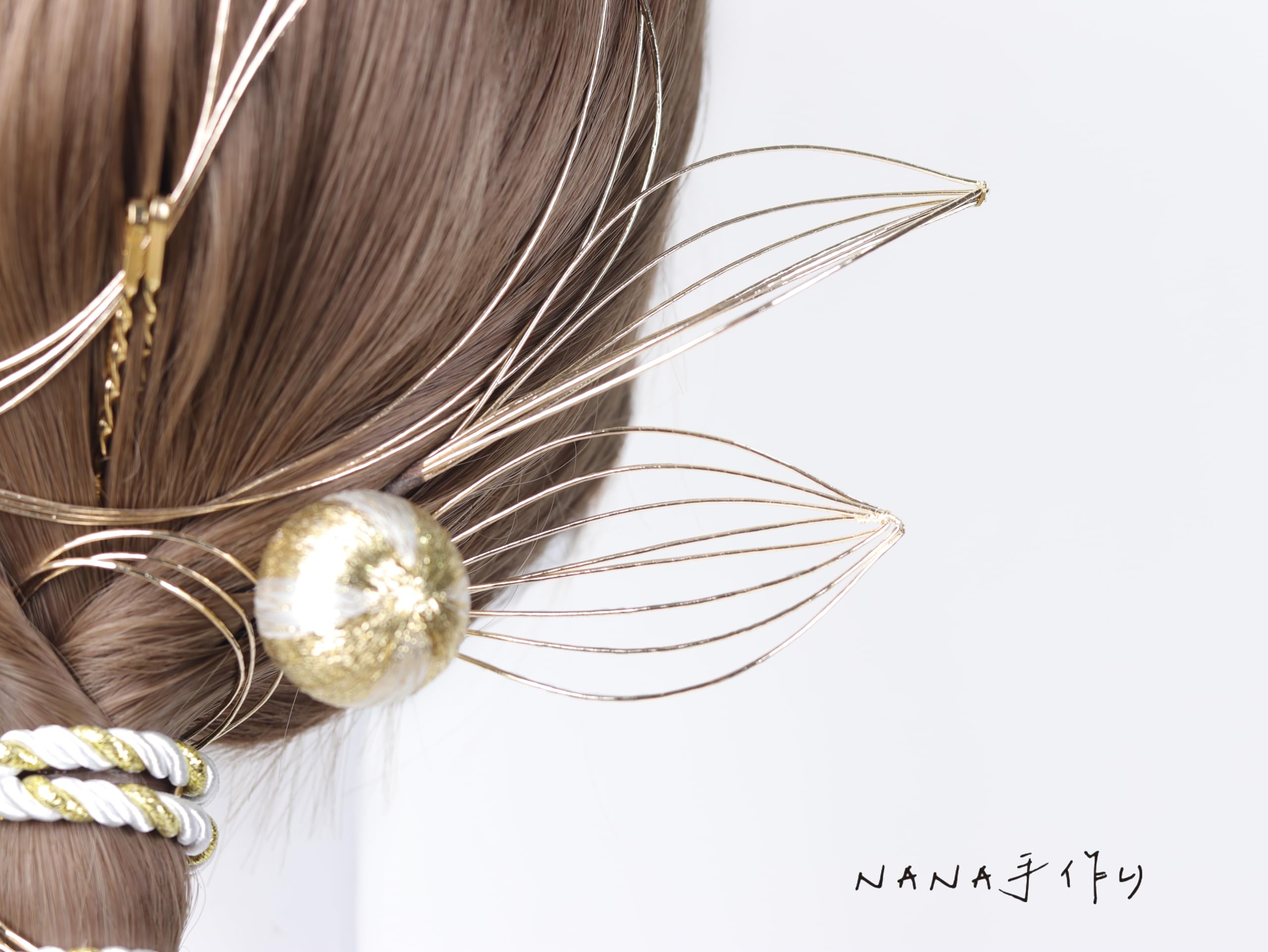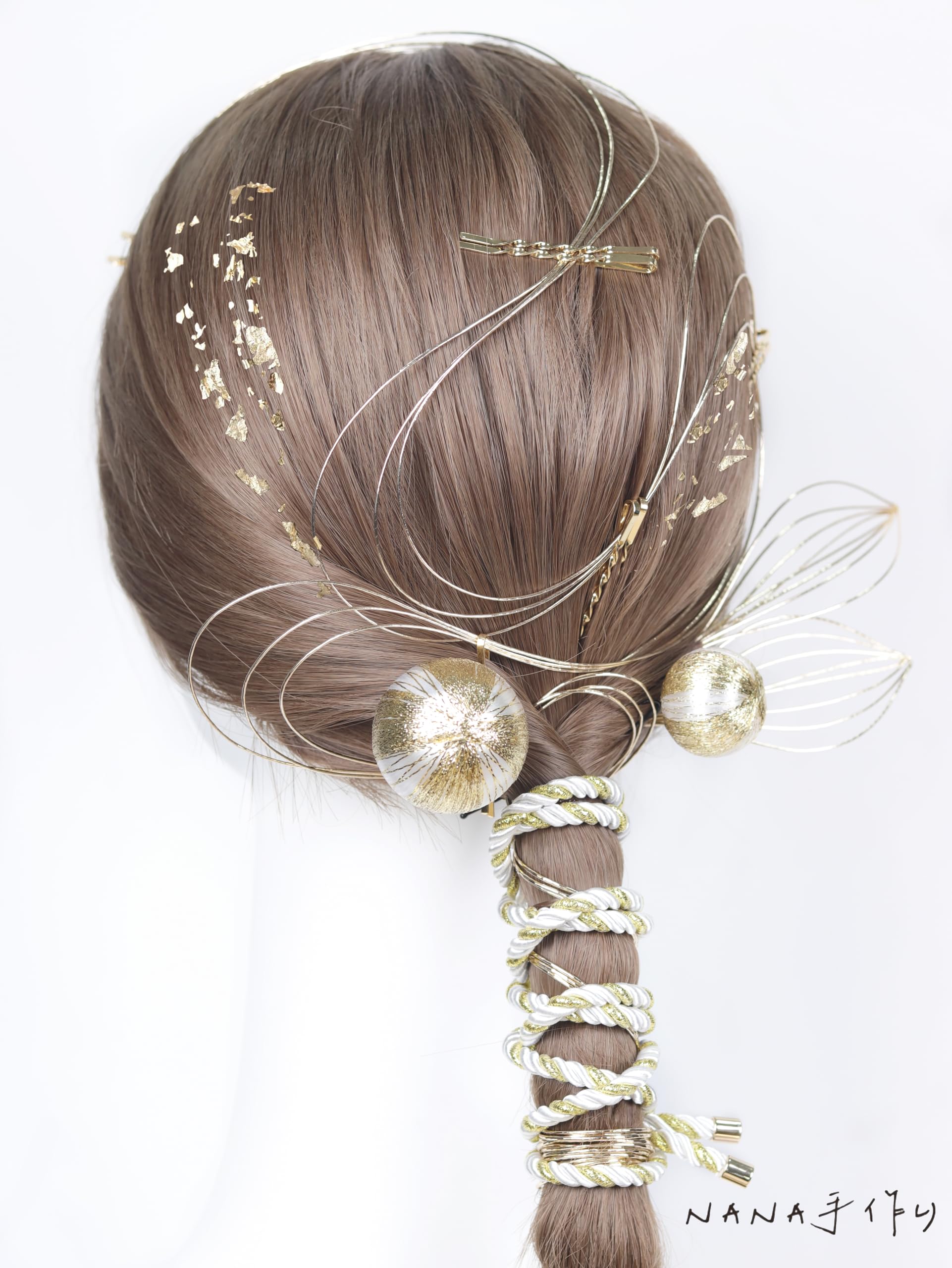 [NANA手作り]髪飾り 和玉 水引髪飾り ホワイト 紐装飾 金箔 卒業式 入園式 入学式 夏祭り 花火 浴衣 七五三髪飾り 成人式髪飾り 振袖髪飾り