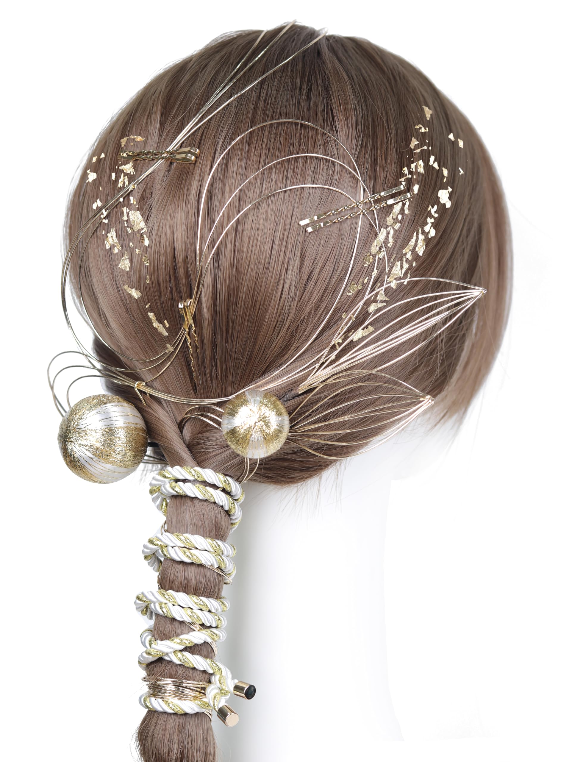 【特価処分】[NANA手作り]髪飾り 和玉 水引髪飾り ホワイト 紐装飾 金箔 卒業式 入園式 入学式 夏祭り 花火 浴衣 七五三髪飾り 成人式髪飾り 振袖髪飾り