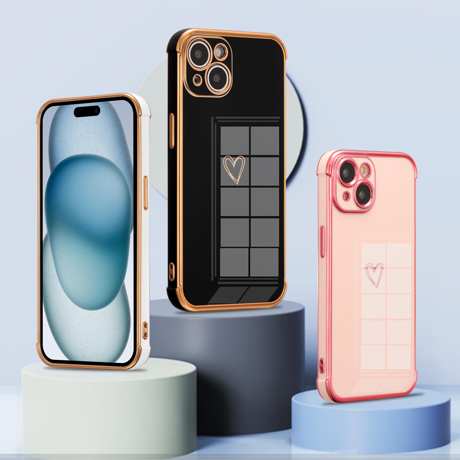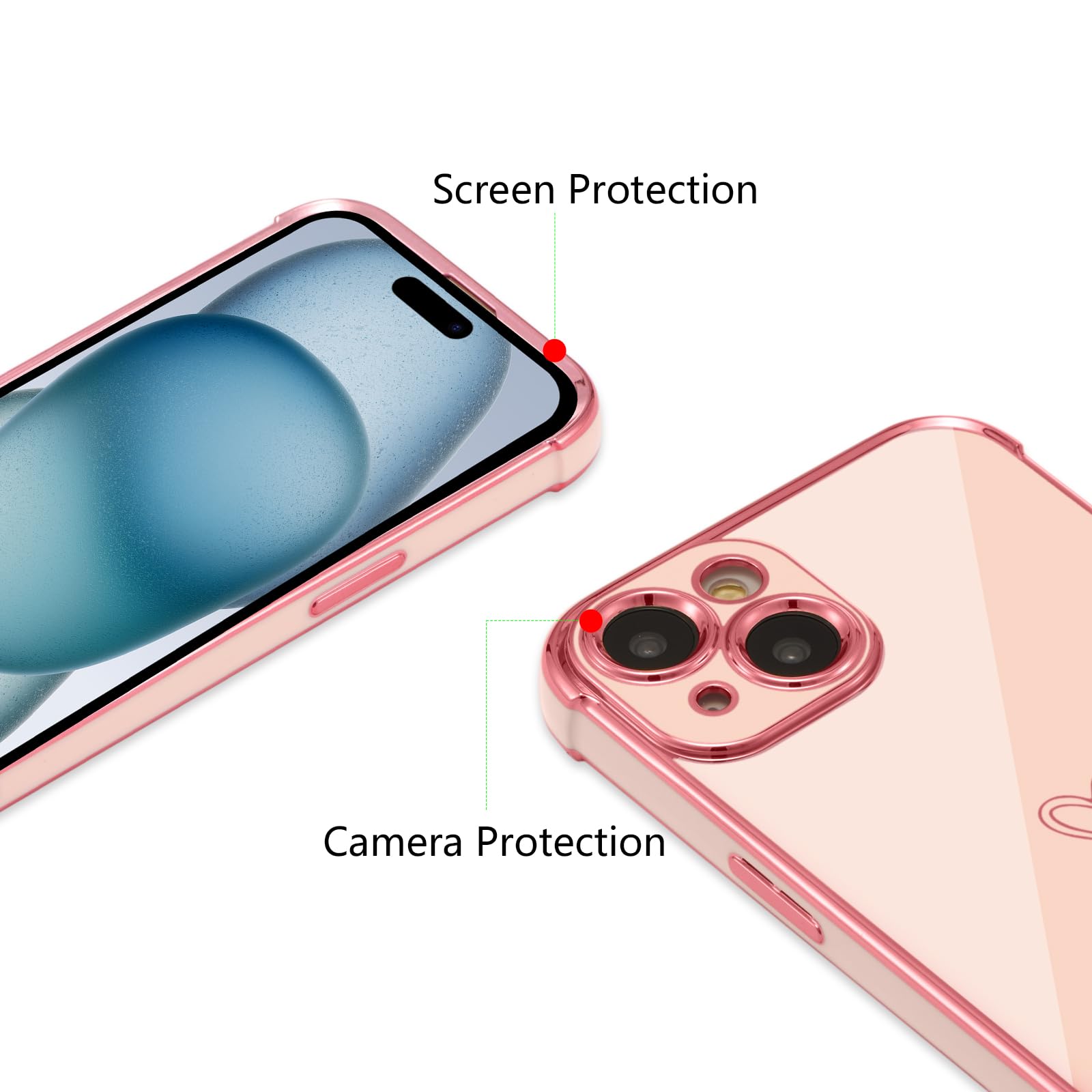 ZTOFERA iPhone 14 用 ハートケース iPhone 14 ケース 柔軟な TPU シリコン スマホケース メッキ加工 ソフト 軽量 耐衝撃 おしゃれ 韓国 可愛い アイフォン 14 ケース 女子 女性 心パターン 携帯電話カバー ワイヤレス充電対応 (ピンク)