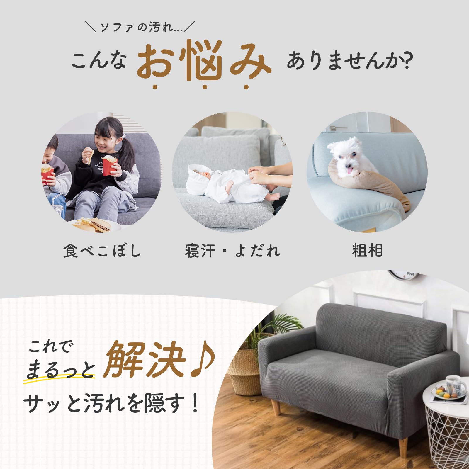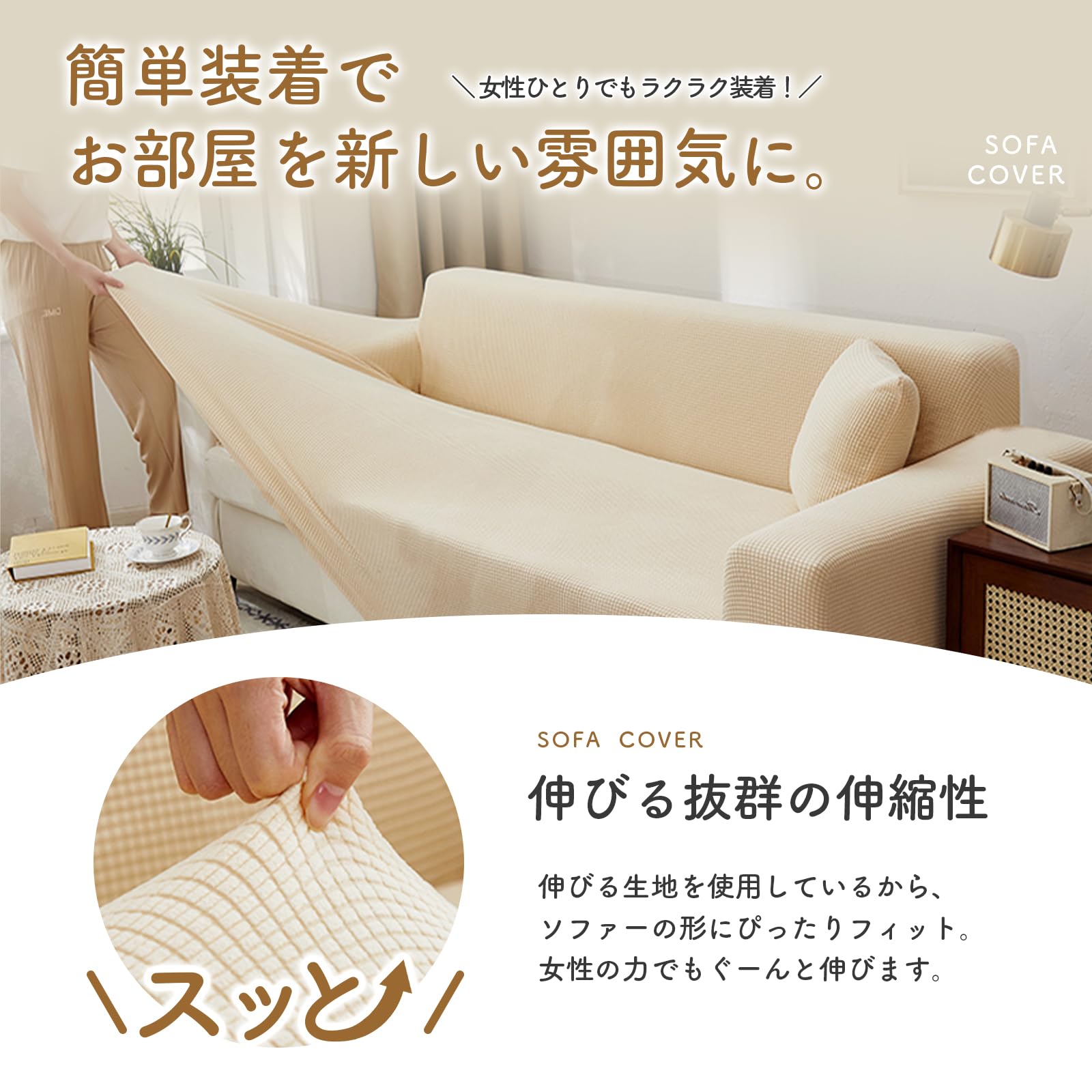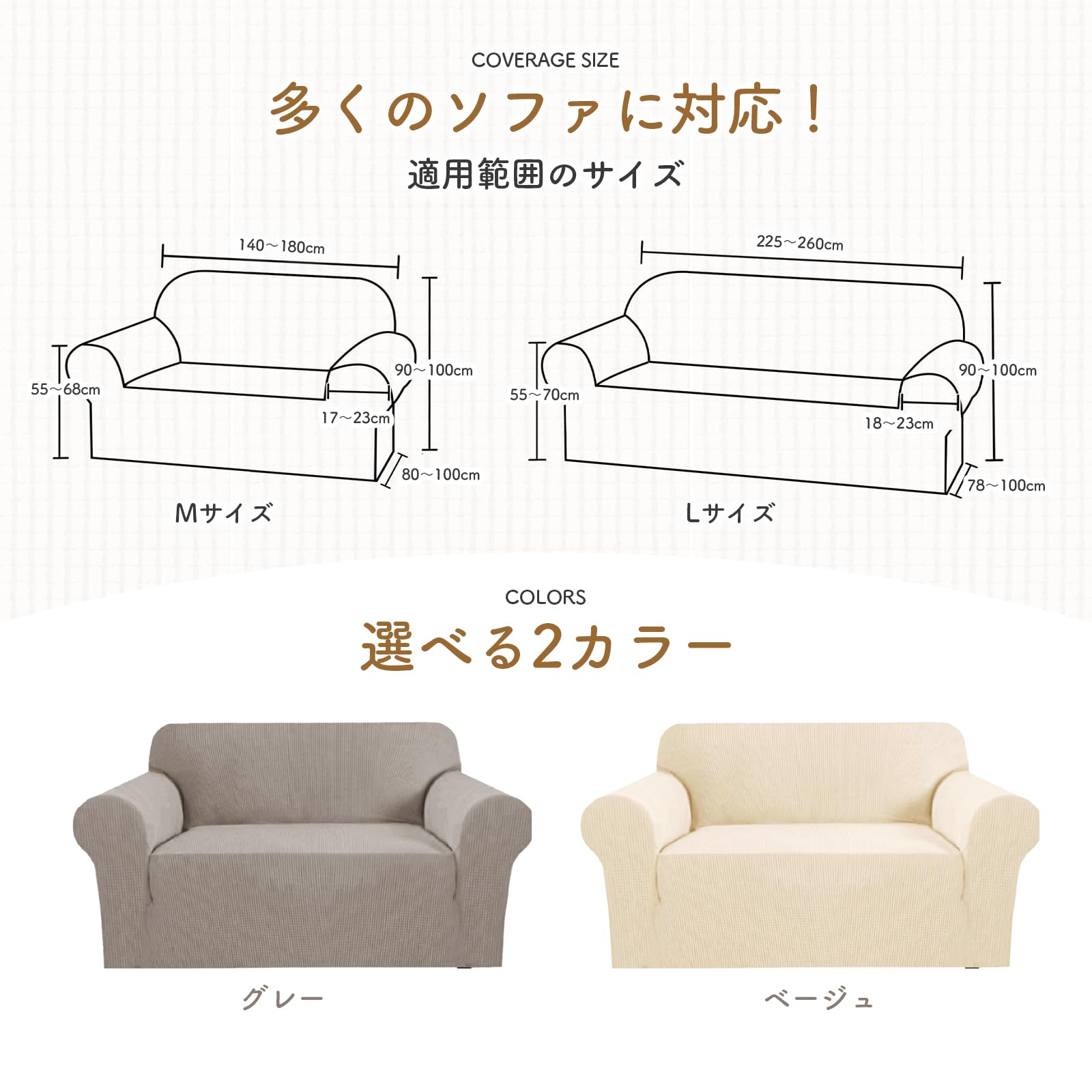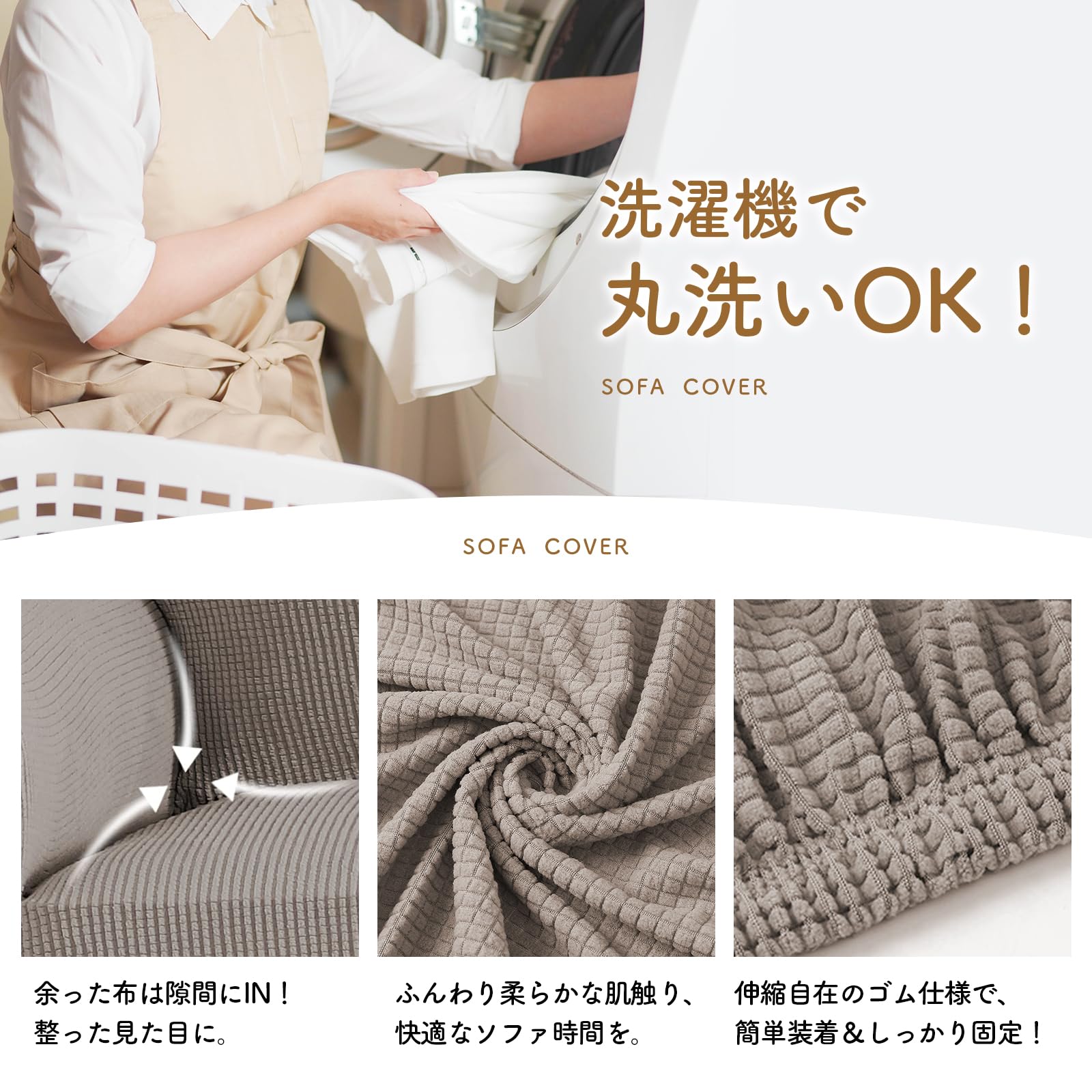 【ソファーを全面保護】 汚れ、傷、汗やほこりからソファーをしっかり守ります。ペットの引っ掻きや子どもの食べこぼし対策にも最適です。特に米色は汚れが目立ちにくい暖色系、浅灰色はほこりが見えにくい冷色系として機能的です。ソファーを守りながら、部屋を明るく清潔に見せる効果もあります。