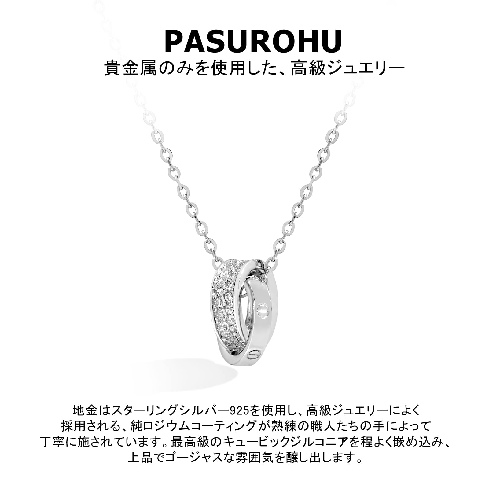 【新着特価】[Pasurohu] ネックレス レディース K18 18金コーティング シルバー925 最高級キュービックジルコニア ペンダント ダブルリング 人気 華奢 ローズゴールド ゴールド プラチナ アジャスター付き 金属アレルギー対応 本物ジュエリー