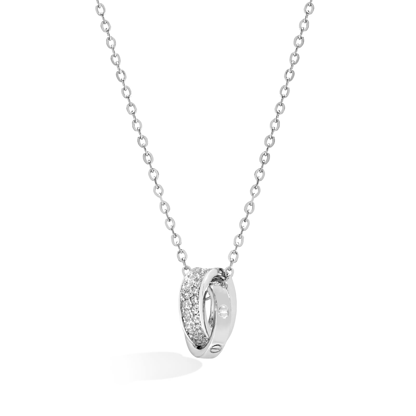 [Pasurohu] ネックレス レディース K18 18金コーティング シルバー925 最高級キュービックジルコニア ペンダント ダブルリング 人気 華奢 ローズゴールド ゴールド プラチナ アジャスター付き 金属アレルギー対応 本物ジュエリー