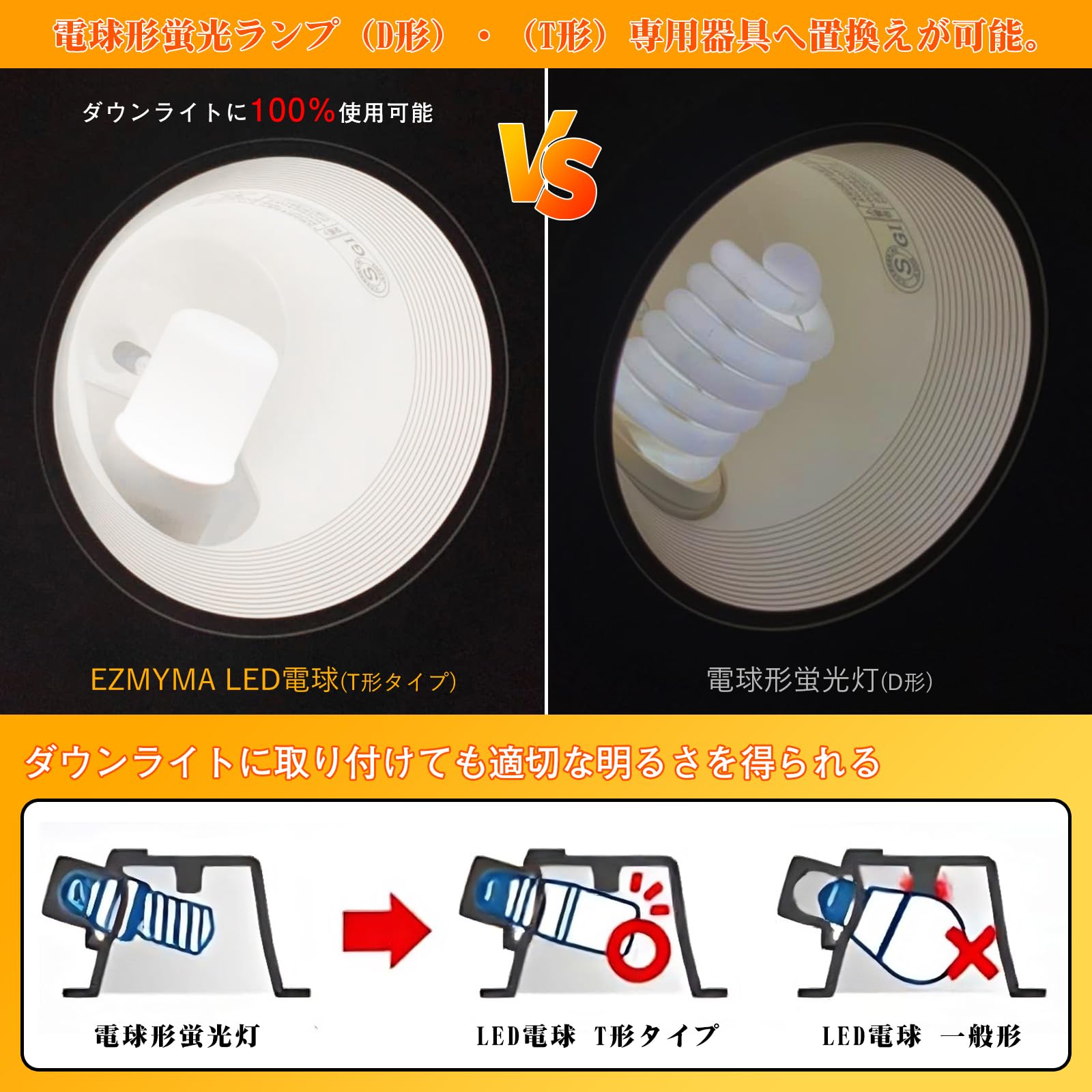 ?【断熱材施工器具対応、ダウンライト器具の取り付けは可能】断熱材施工器具や密閉形器具への対応により、高い器具嵌合率を達成しました。電球形蛍光ランプ(D形・T形)専用器具にも取付け可能で、同等の配光が得られます。