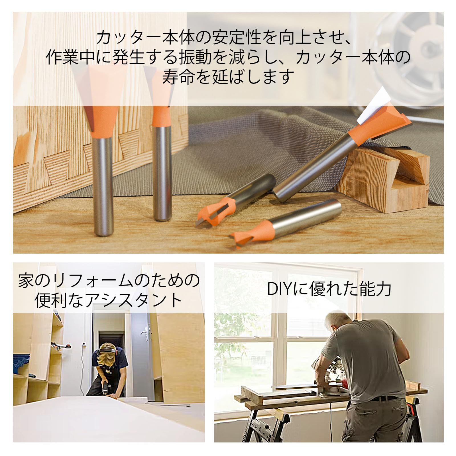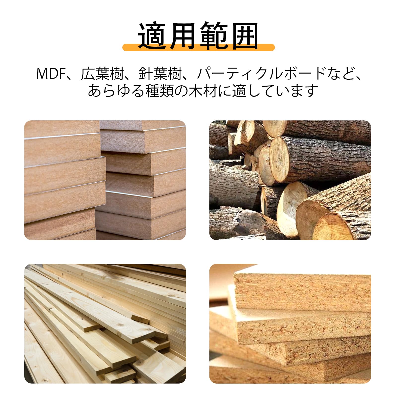 【適用範囲】:無垢材、MDF、ラミネート、チップボード、アクリルなど様々な素材に適しています。スチール、鉄、砂などの非木材には使用できませんのでご注意ください。