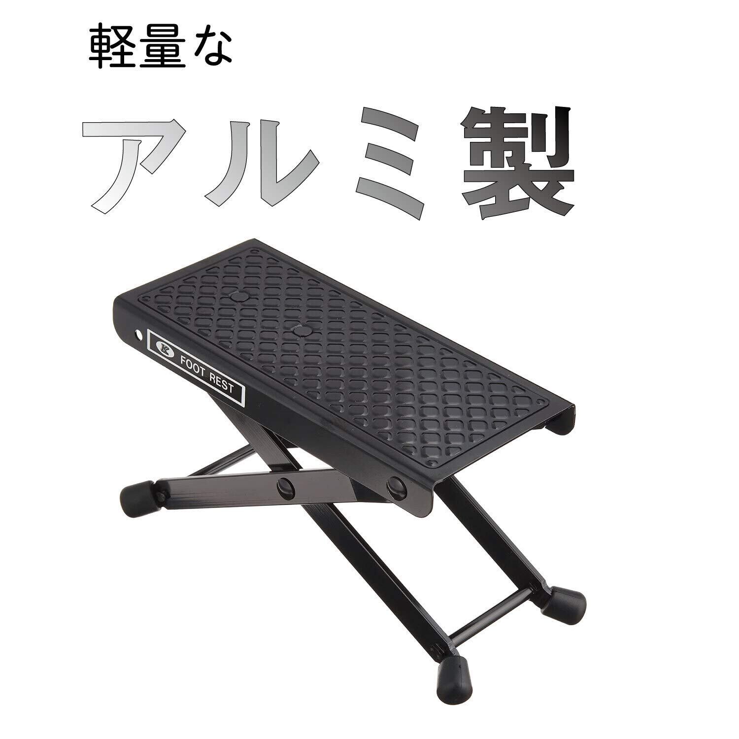 キクタニ ギター足台 アルミ製 重量210g 高さ調節4段 ブラック GF-7 キクタニ製クラシックギター用アルミ製足台 高さ4段階(100mm/135mm/160mm/175mm)で調節可能 サイズ:横幅:8.5cm X 縦幅:19.3cm、重量:約240g 耐荷重:35Kg キャリングバッグ付属 アルミ製、ギター用足台。バッグ付き 安全警告 この足台は35Kgまでの荷重に耐えます。高さを調節する際は、安定さを確保してください。
