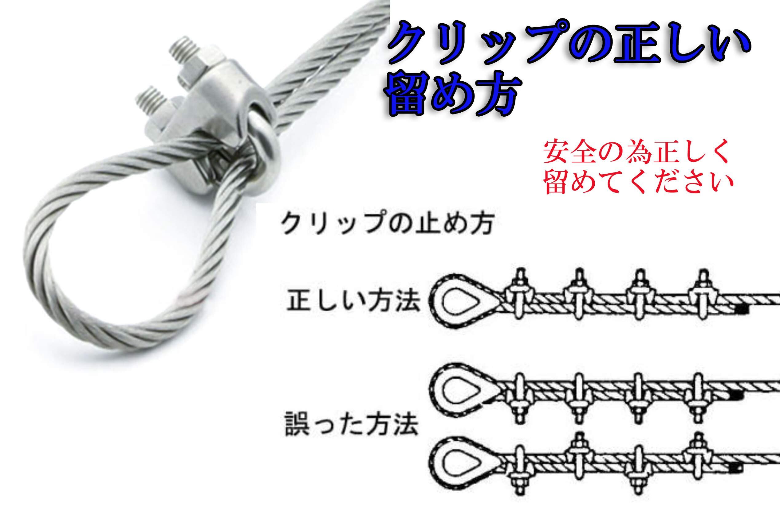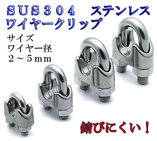 【在庫のみ】【ヘルスリフェ】ステンレス製 ワイヤークリップ ステンレスワイヤークリップ ロープクランプ ロープ留め ワイヤー結束 SUS304 18-8ステンレス ケーブルクランプ Uボルトワイヤーグリップ 6個セット 2mm