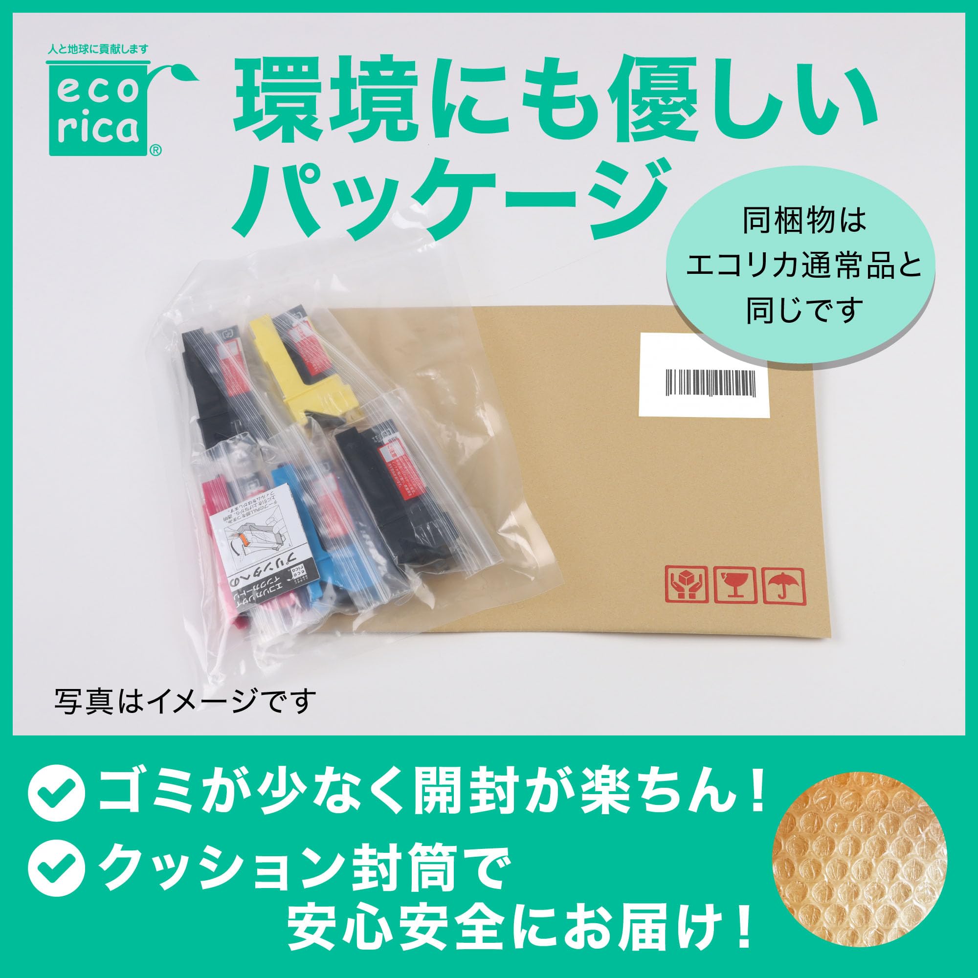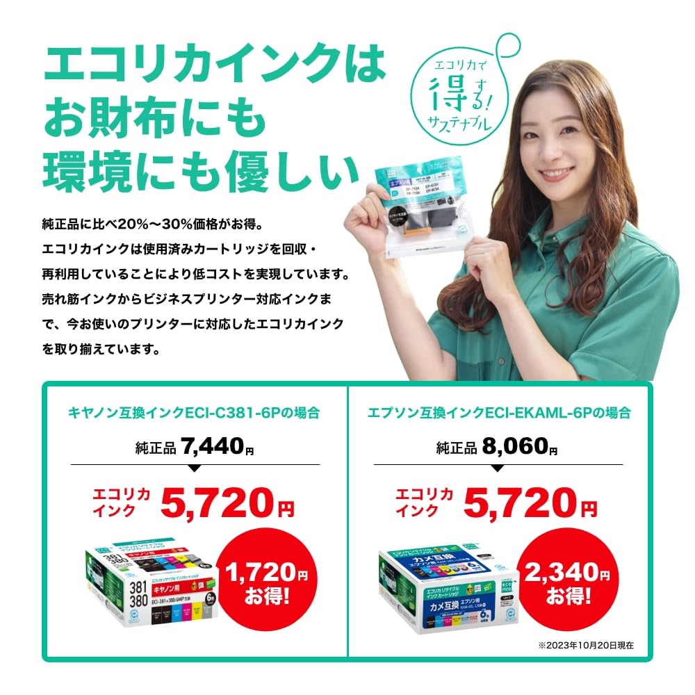 また、エコリカは全製品、環境・品質・安全性の厳しい認定基準をクリアしたエコマーク認定商品で、純正品と同等の印刷枚売もしています。