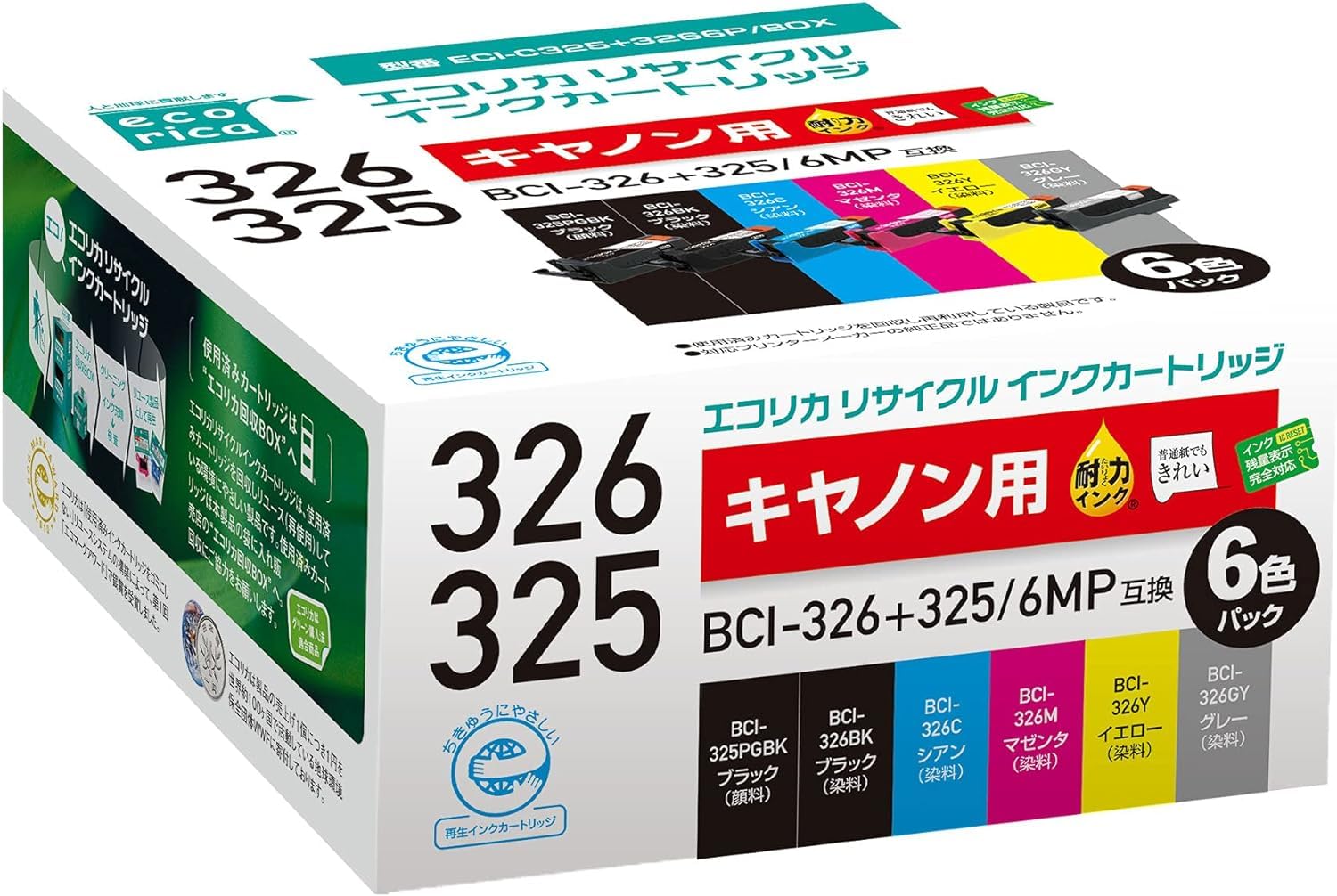 エコリカ キヤノン BCI-326+325/6MP対応リサイクルインク 6色パック EC-C326+325/6A 残量表示対応 【エコリカ封筒パッケージ】