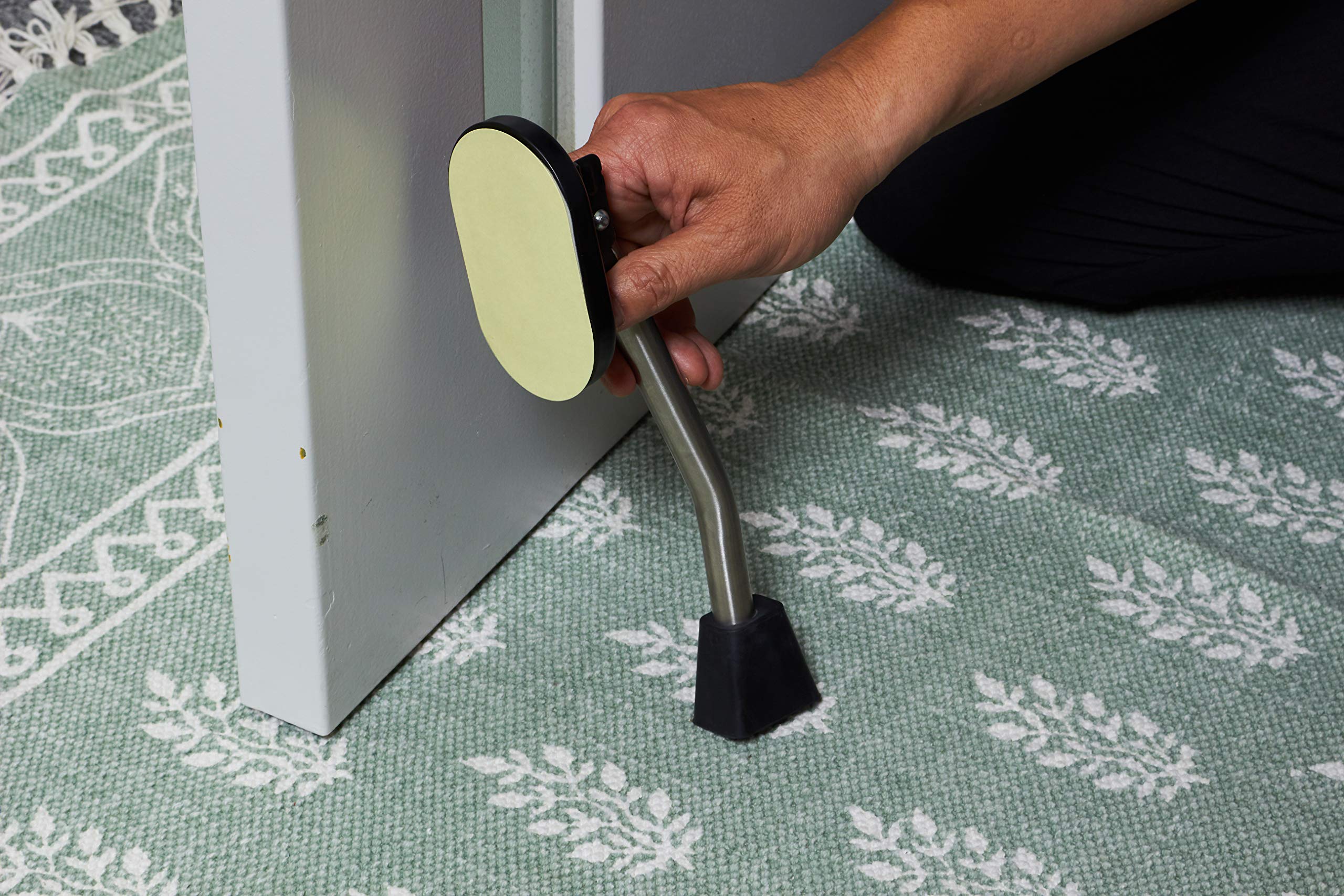 ●大型強力ゴムキャップでガッチリ固定します。●補助板により木やアルミのドアにも固定できます。●両手がふさがっていても、足で軽く押し下げるだけで、ドアをお好みの角度で固定することができます。●貼り直し自由の片面弱粘着のウレタン系保護テープでズレ、傷を防止し、固定力が大幅アップしました。