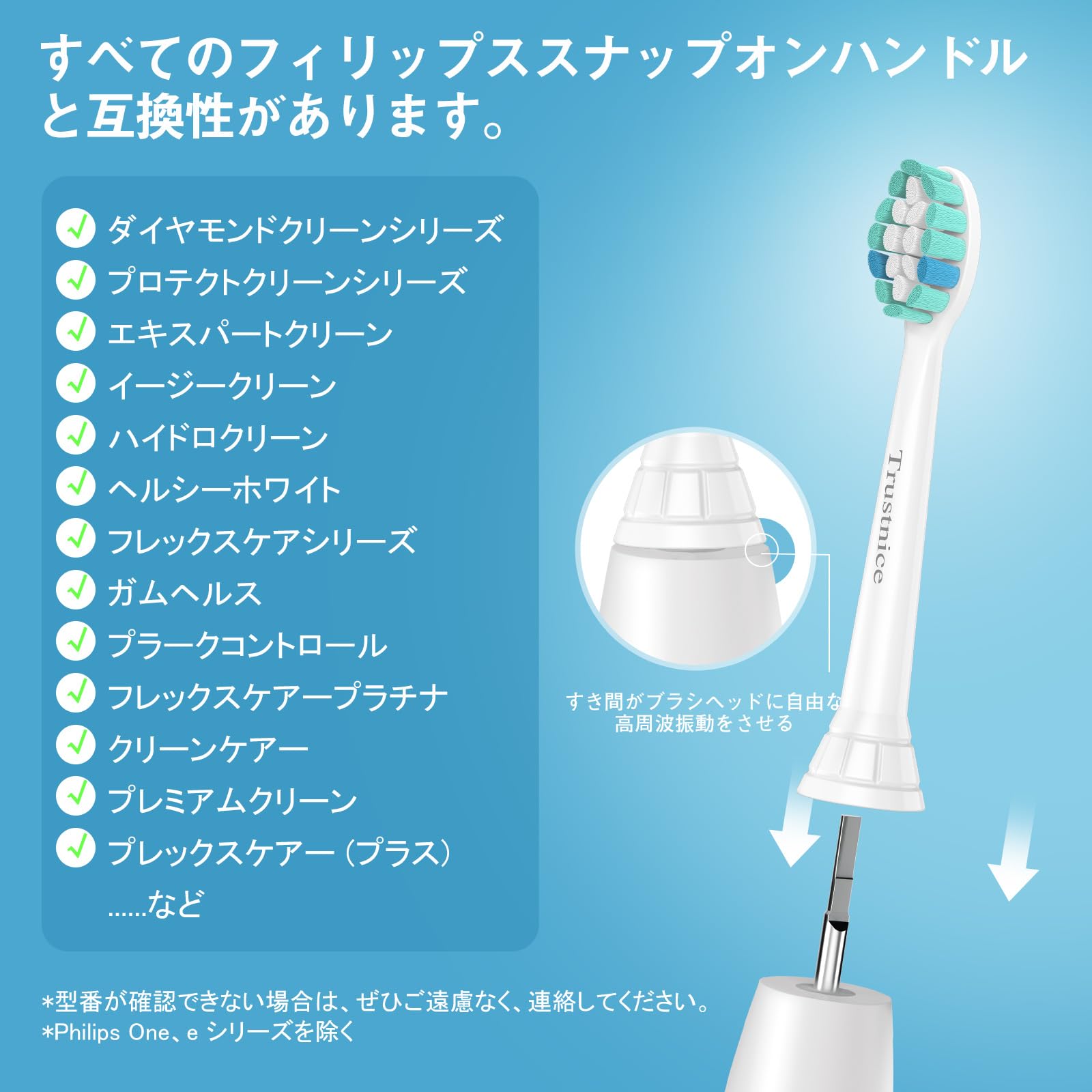 【高性能互換】philips sonicare 対応 替えブラシ ソニック振動を効率的に伝達し、純正品と遜色ない清潔感を実現。ソニッケアー 互換 替えブラシ 独自開発の接続機構により、振動伝達効率を最大化。フィリップス 用の 電動歯ブラシ 替えブラシの主流機種(HXシリーズなど)に完全対応(※E系/oneを除く)。ご購入前には必ず対応機種をご確認ください