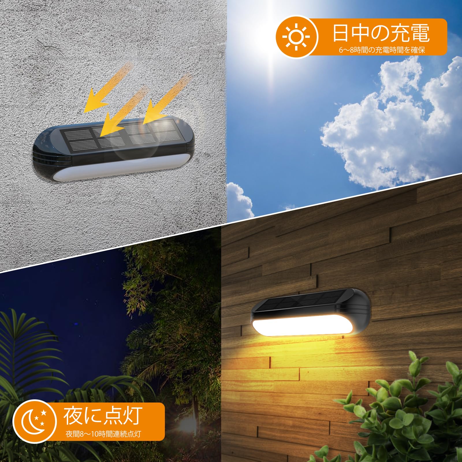 【長時間点灯】45度の傾斜角のデザインと高品質な単結晶ソーラーパネルで、太陽光の吸収と変換効率を最大限に高めています。さらに、大容量600mAhバッテリーを搭載しており、フル充電後、10時間以上も点灯できます。そのため、一晩中点灯させることができ、突然消える心配ありません