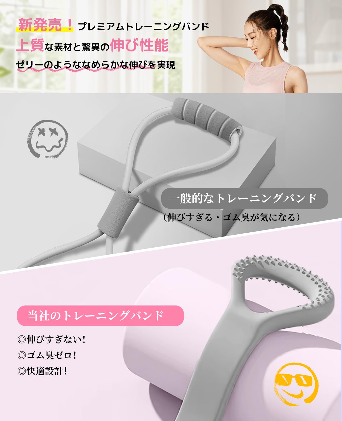 【耐久性】1万回以上の引張試験に耐える高耐久性で、繰り返しの使用にも安心。滑りにくいグリップ加工で、汗をかいてもしっかりホールド。さらに水洗いも可能なので、いつでも清潔を保てます。