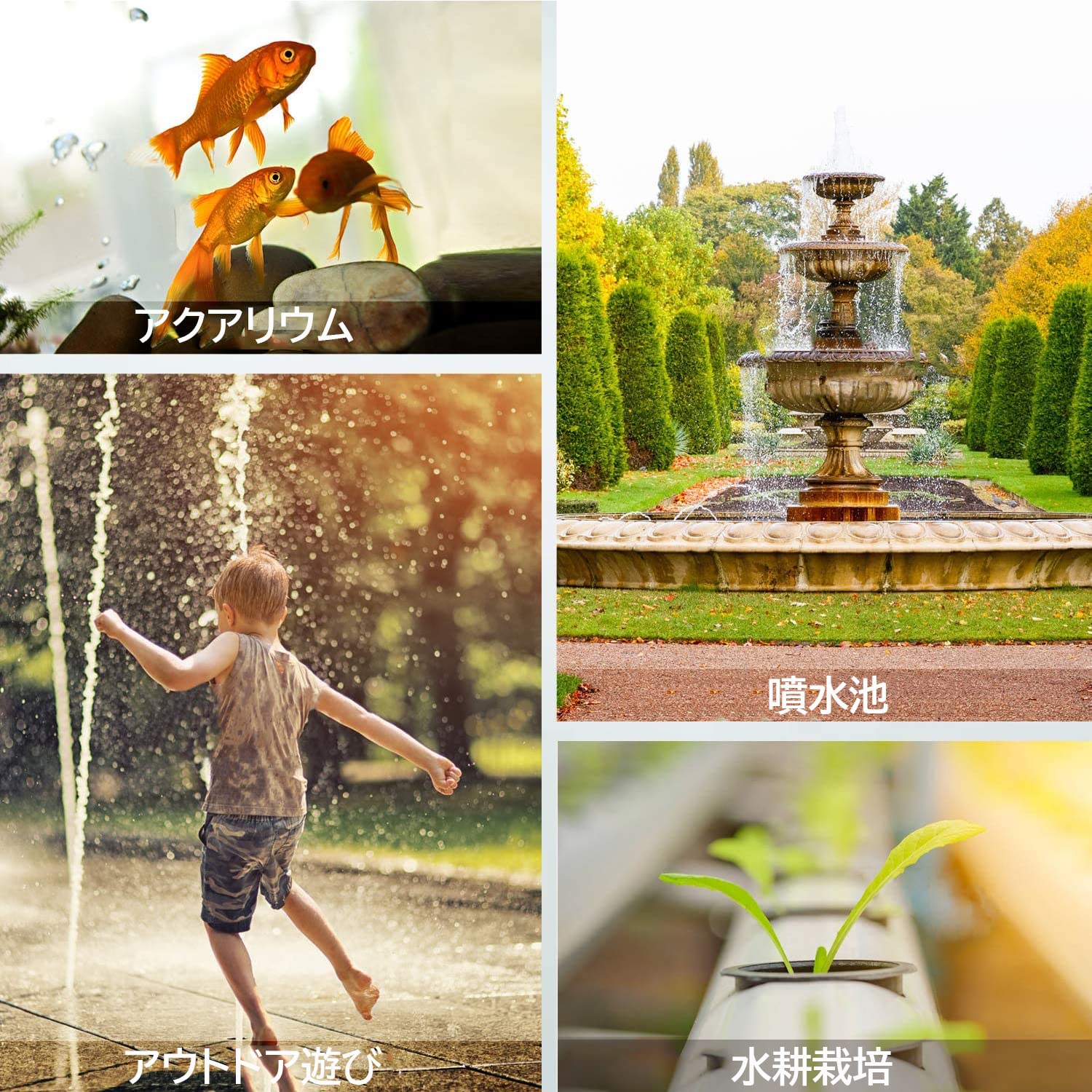 【広幅の場所に適用】小型水中ポンプは水族給水・排水の流れを作られるために設計されているので、水族館、噴水、魚の池、魚介類の養殖場など水循環は必要な所はもちろん、家庭プールやお風呂の水を洗濯機に吸い上げるなどのご使用も楽になります。