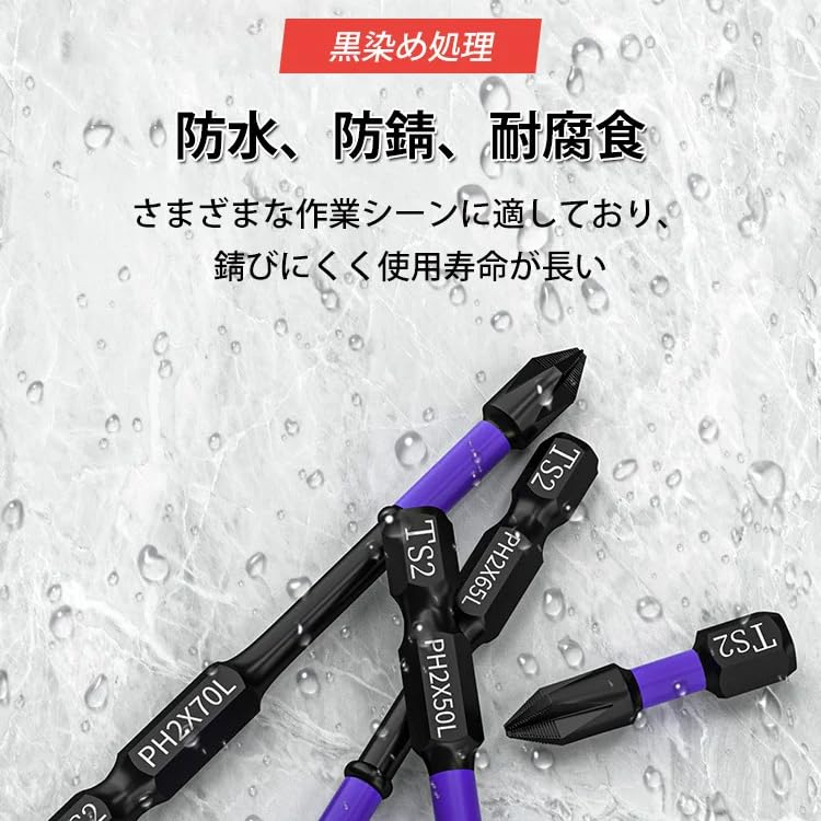 【磁気の強いです】:高負荷/高強度のスクリュードライビング作業用に設計されており、インパクトドライバーでの使用に適しています。ねじの食い込みが深く、ヘッドの滑りを効果的に抑え、作業効率を大幅に向上させます。