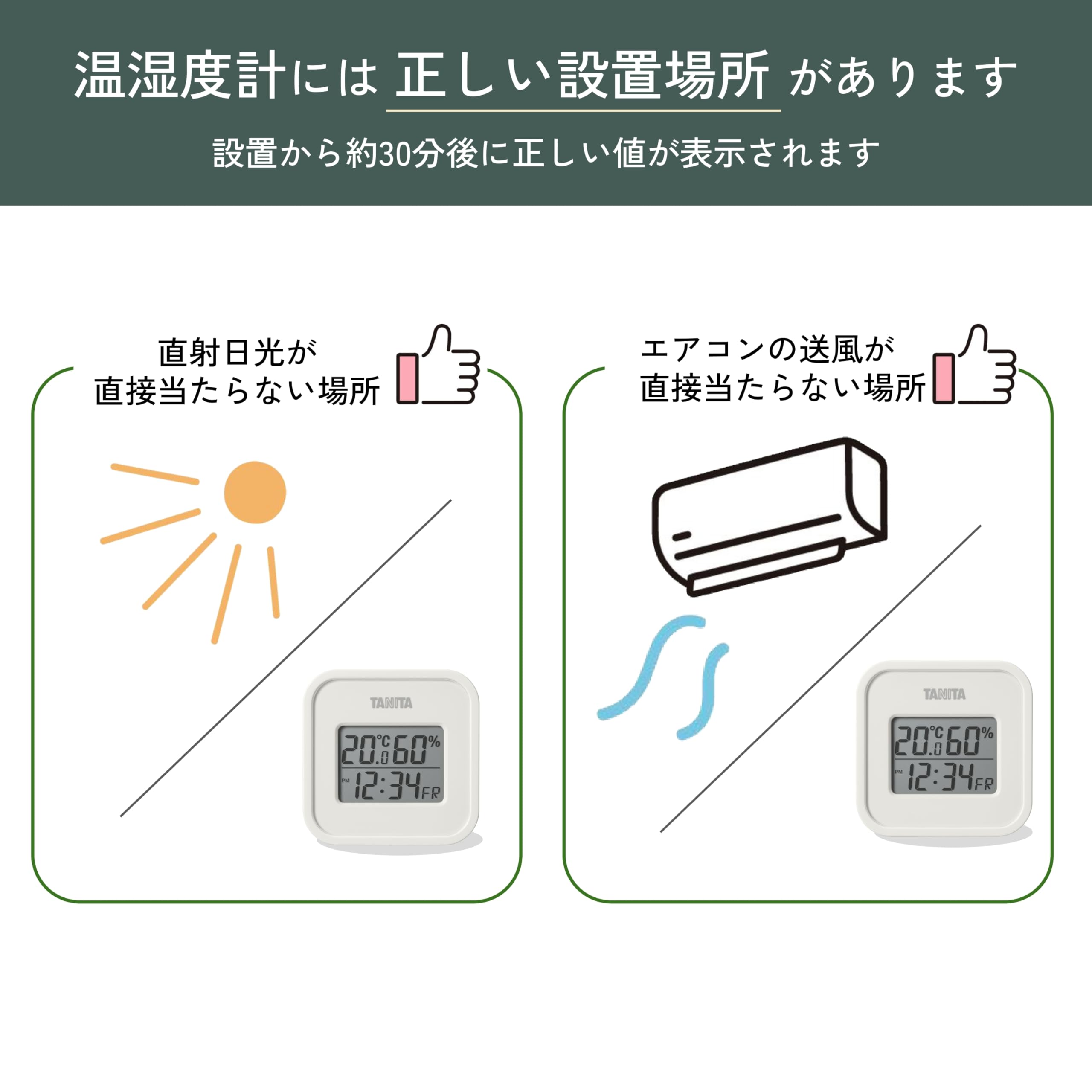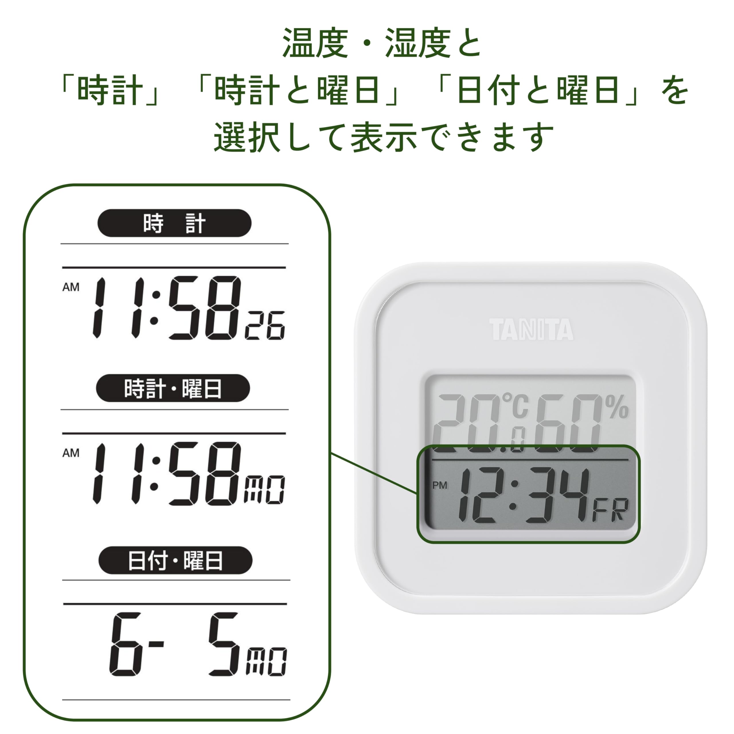 タニタ Tanita 温湿度計 一目で室内環境がわかる 時計 カレンダー 温度 湿度 デジタル 壁掛け 卓上 アイボリー マグネット TT-588-IV 本体背面にはマグネット、フック穴がついているので、置き掛け自由。 -
