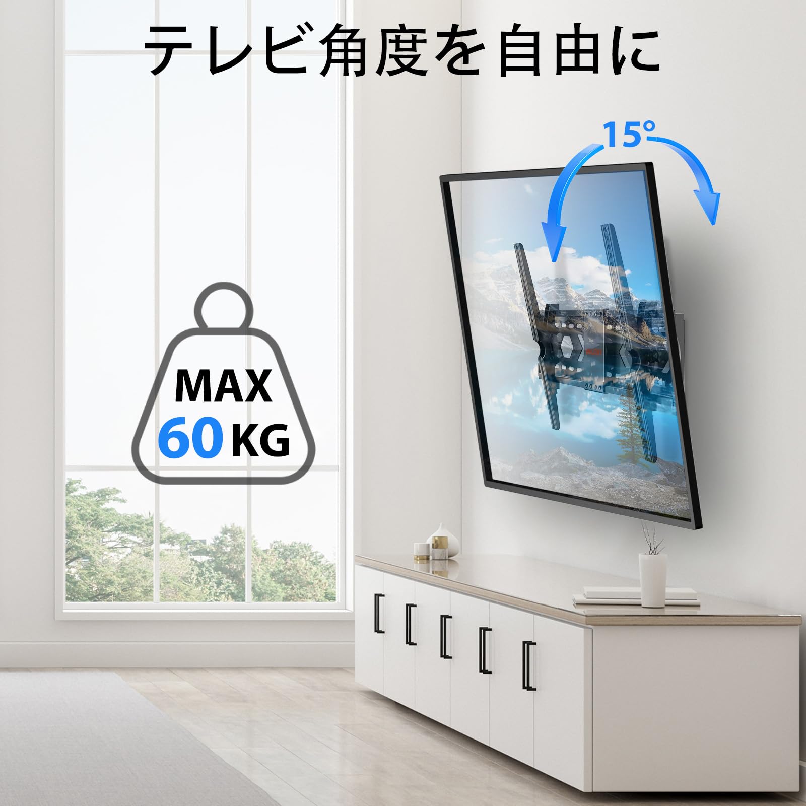 テレビ壁掛け金具 32〜84 インチ LED LCD 液晶対応 上下角度調節可能 汎用tv壁掛け金具 大型テレビかへかけ金具 VESA最大600×400mm 耐荷重60kg 43 48 50 55 58 60 65 70 75 80 型テレビ 壁掛けスタンド