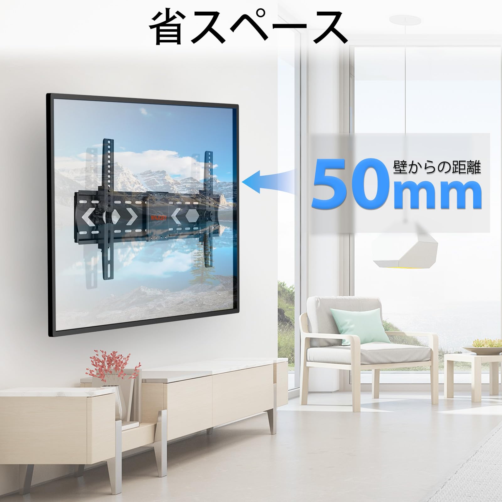 【省スペース】テレビ台の代わりに、本薄型壁掛け金具はテレビを壁に近く取り付けられて、スペースを大きく節約でき、お部屋がスッキリ&オシャレに見えます!キッチン、書斎、リビング、トイレなどに適しています。力いらず移動できるので、お掃除が楽々になります。