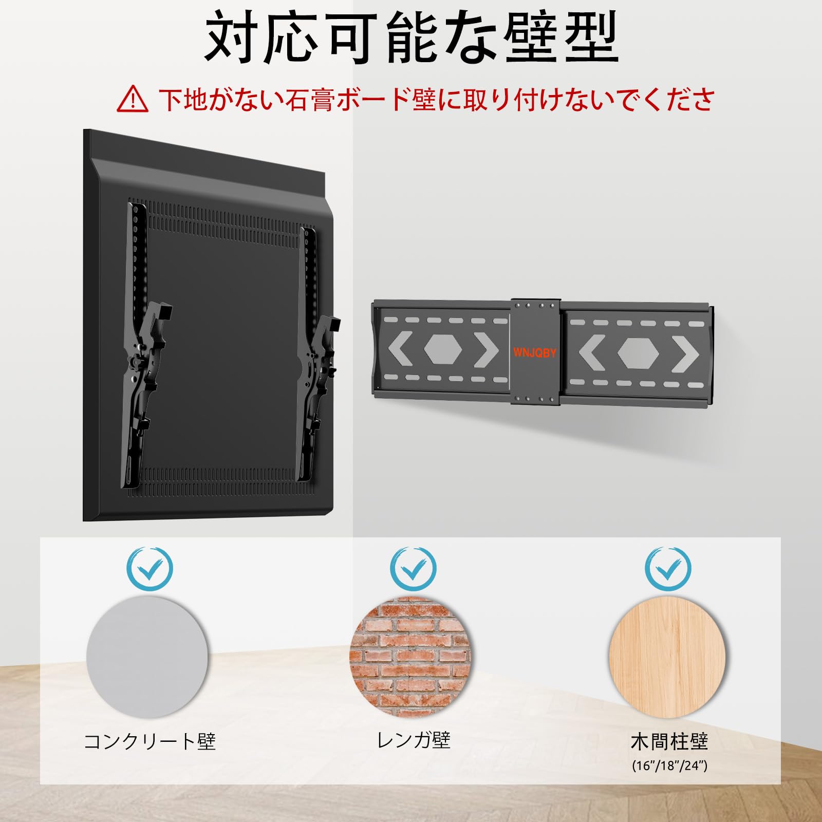 【対応インチ-汎用テレビ壁掛け金具】32〜84インチ/型のLCD液晶テレビ・OLED・4Kテレビに対応できる汎用タイプ壁掛け金具です。テレビ用ブラケットはVESA 壁掛け200X200〜600X400mm。重量が60kg以下であることをご確認してください。