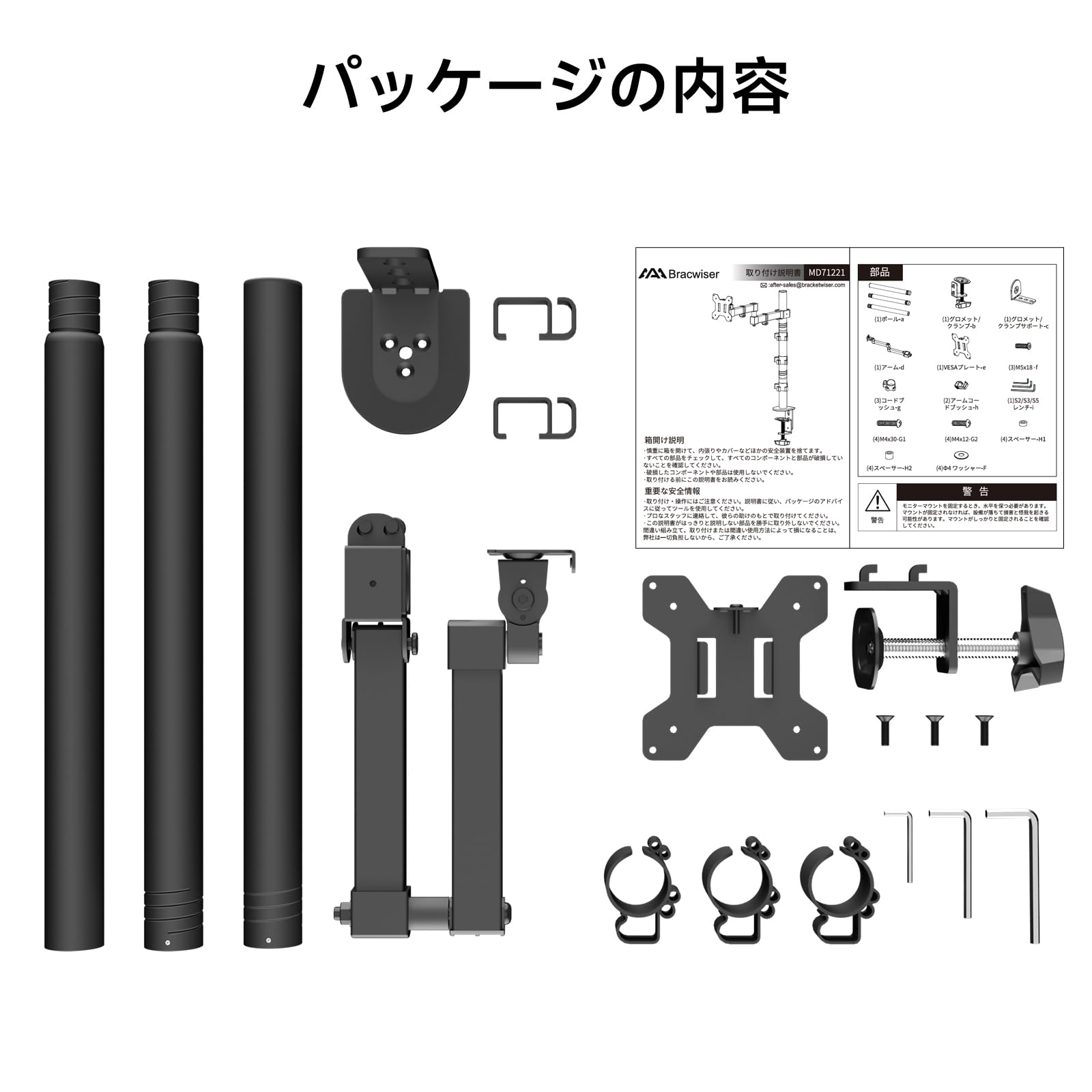 Bracwiser PCモニターアーム ディスプレイアーム モニターアーム 4軸 120cm 水平多関節 13-32インチ対応 グロメット式&クランプ式 VESA規格75-100mm 耐荷重10KG MD71221